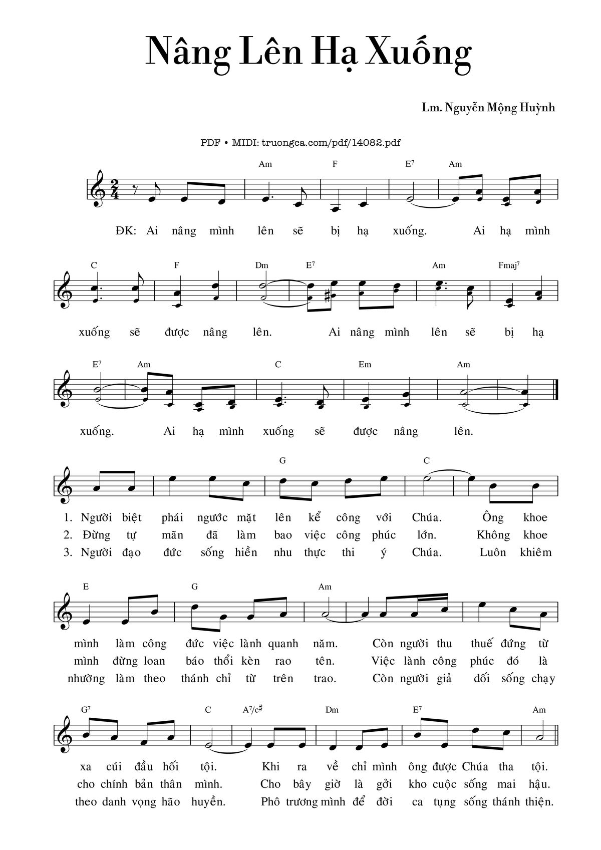 Điệp khúc. Ai nâng mình lên sẽ bị hạ xuống. Ai hạ mình xuống sẽ được nâng lên. Ai nâng mình lên sẽ bị hạ xuống. Ai hạ mình xuống sẽ được nâng lên.