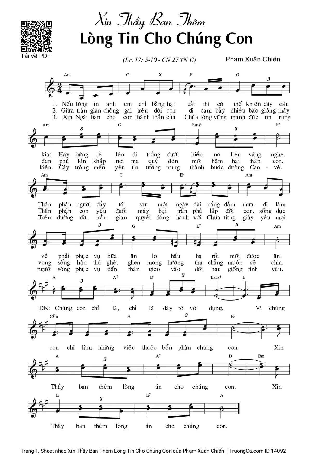 Các sheet PDF tương tự Xin Thầy Ban Thêm Lòng Tin Cho Chúng Con: