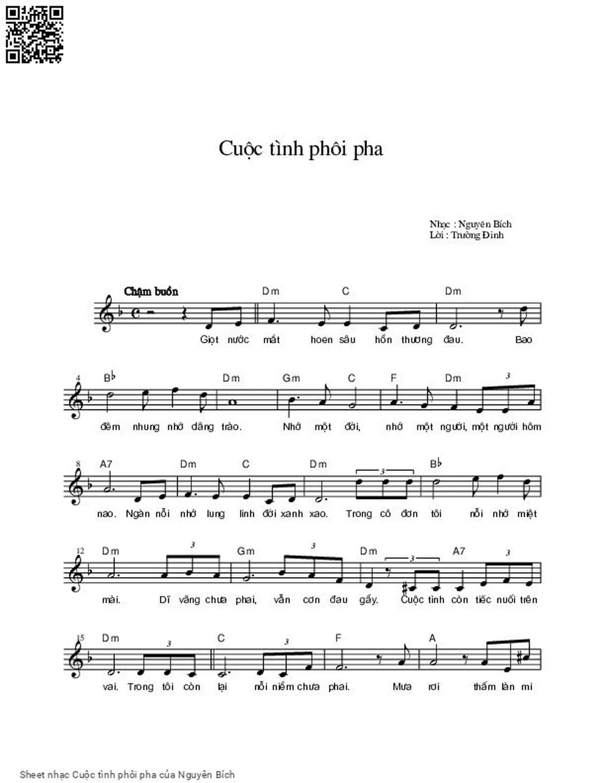 Nguyên Bích Giọt nước mắt hoen sâu hồn thương đau [PDF] [Sheet] [Lời H.A] [Mp4/Midi]