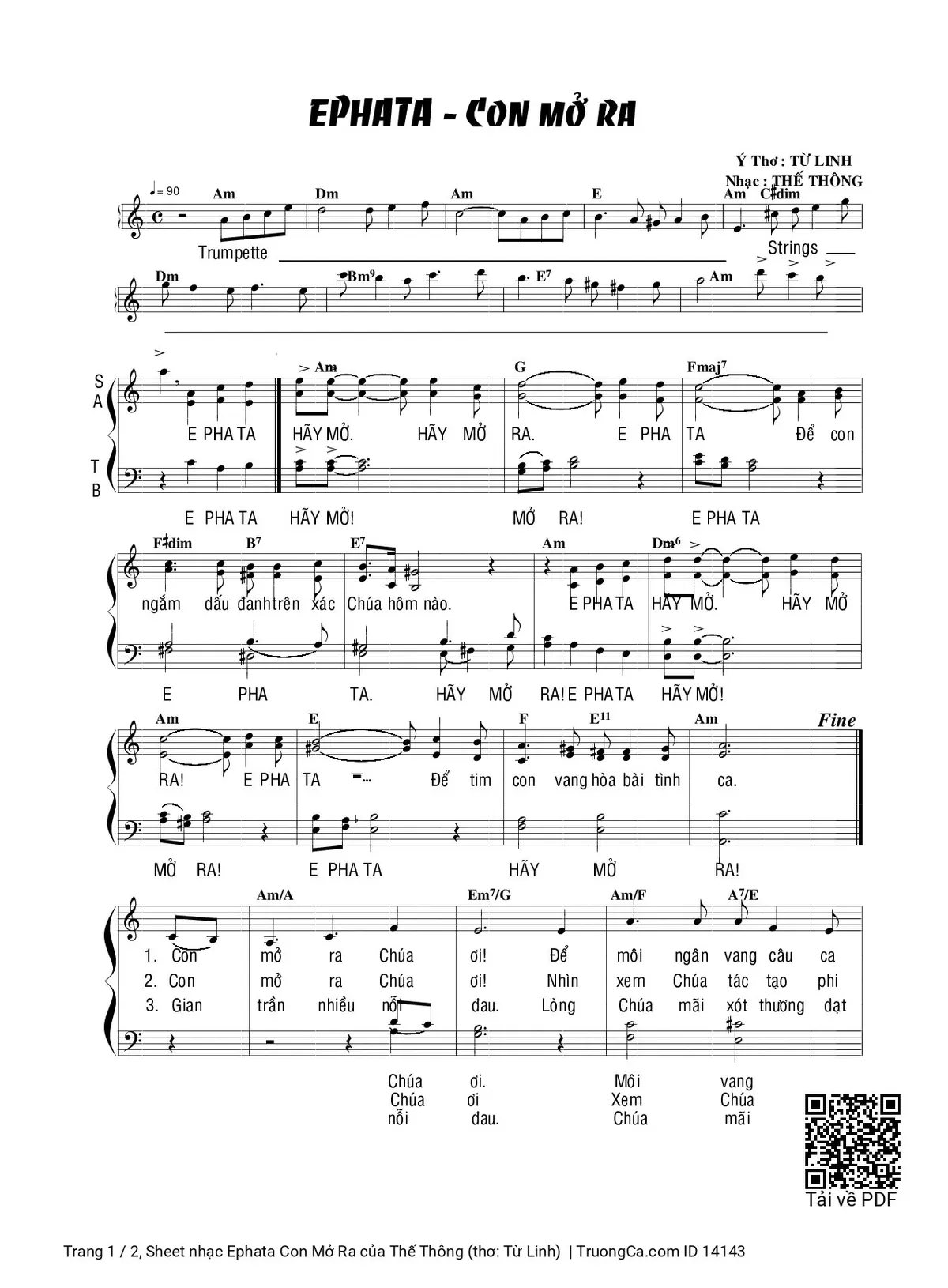 Thế Thông (thơ: Từ Linh) Ephata Hãy mở hãy mở ra Ephata Để con ngắm dấu đanh trên xác Chúa hôm nào [PDF] [Sheet] [Lời H.A] [Mp4/Midi]