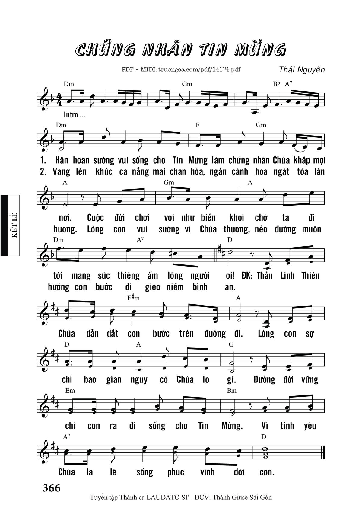 Câu đầu: Hân hoan sướng vui sống cho Tin Mừng làm chứng nhân Chúa khắp mọi nơi
