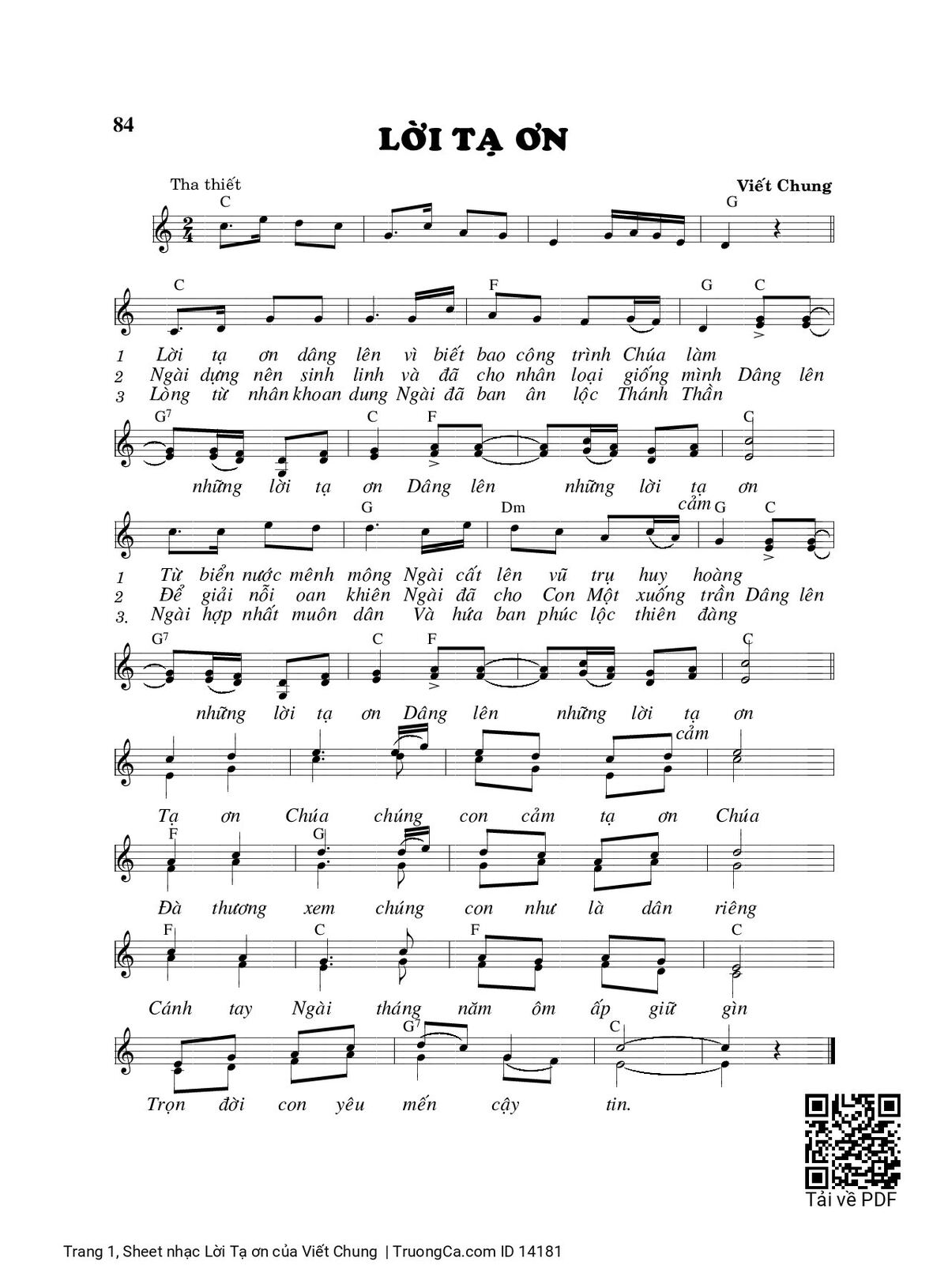 Các sheet PDF tương tự Lời Tạ ơn: