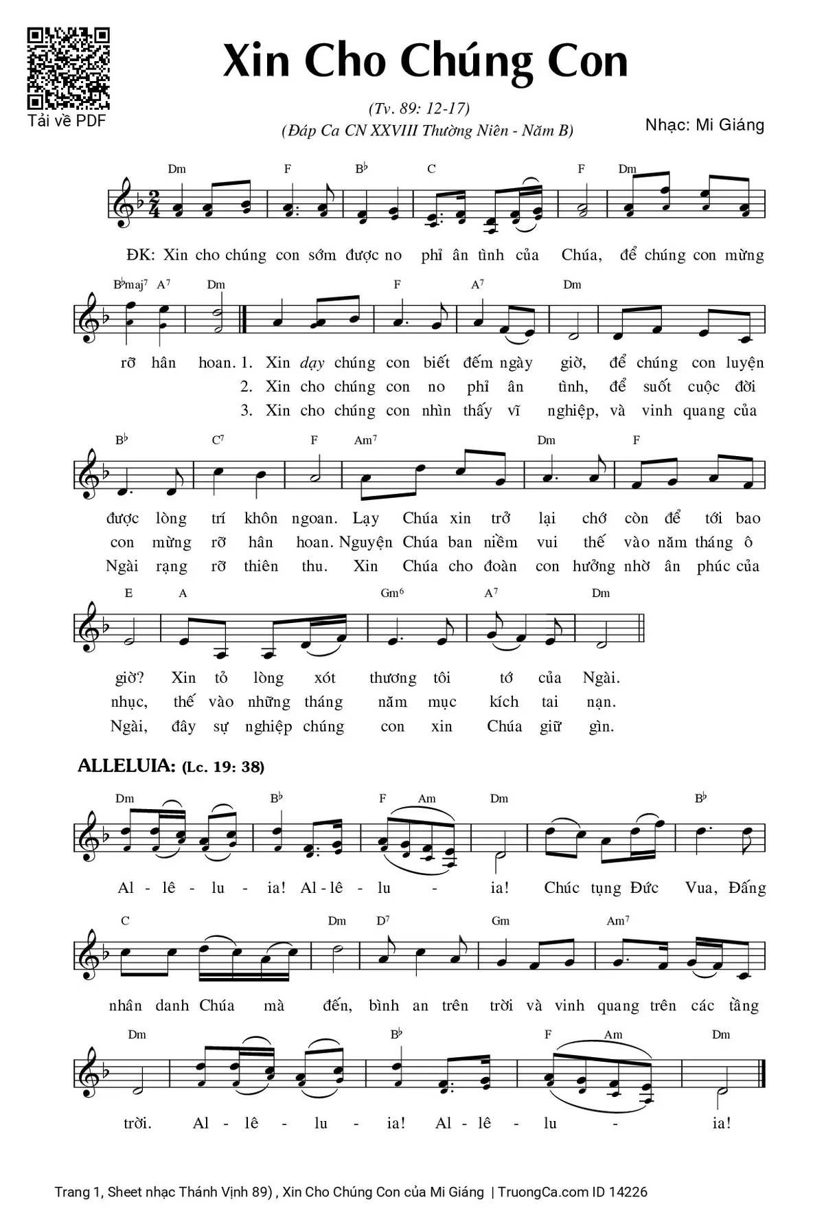 Các sheet PDF tương tự Thánh Vịnh 89, Xin Cho Chúng Con: