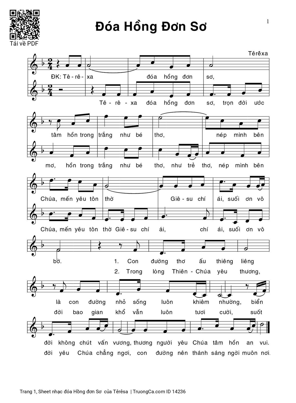 Phần nghe hát đóa Hồng đơn Sơ (Têrêsa) được nhúng từ Youtube, Musescore hoặc link ngoài và chịu sự kiểm soát bản quyền của bên thứ ba đó, vì vậy có thể bị xóa hoặc chèn quảng cáo bất kỳ lúc nào. Nếu bạn không nghe - xem được ca sĩ hát tức là đã bị Youtube hoặc Musescore kiểm soát.