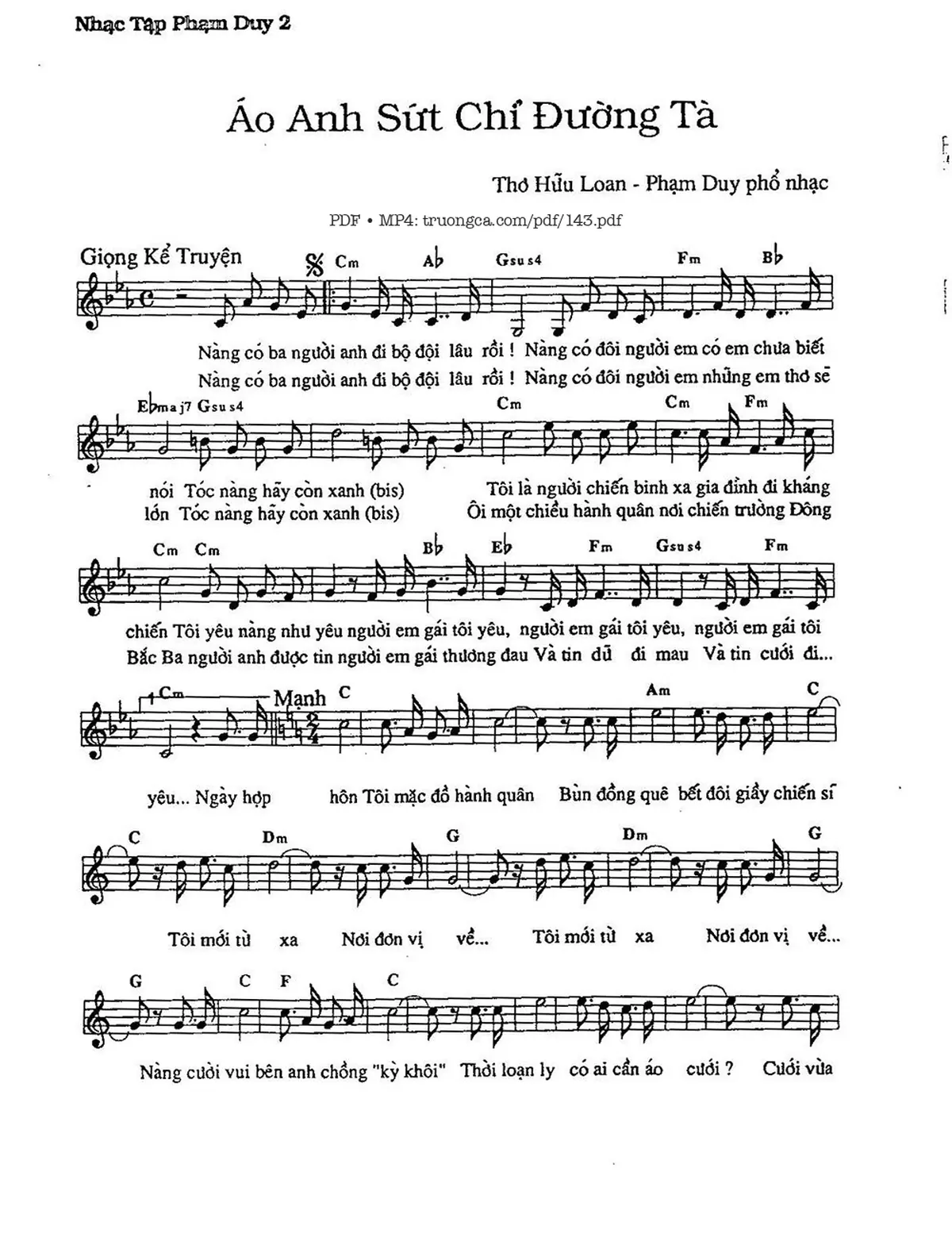 Phạm Duy Nàng có ba người anh đi bộ đội lâu rồi [PDF] [Sheet] [Lời H.A] [Mp4/Midi]