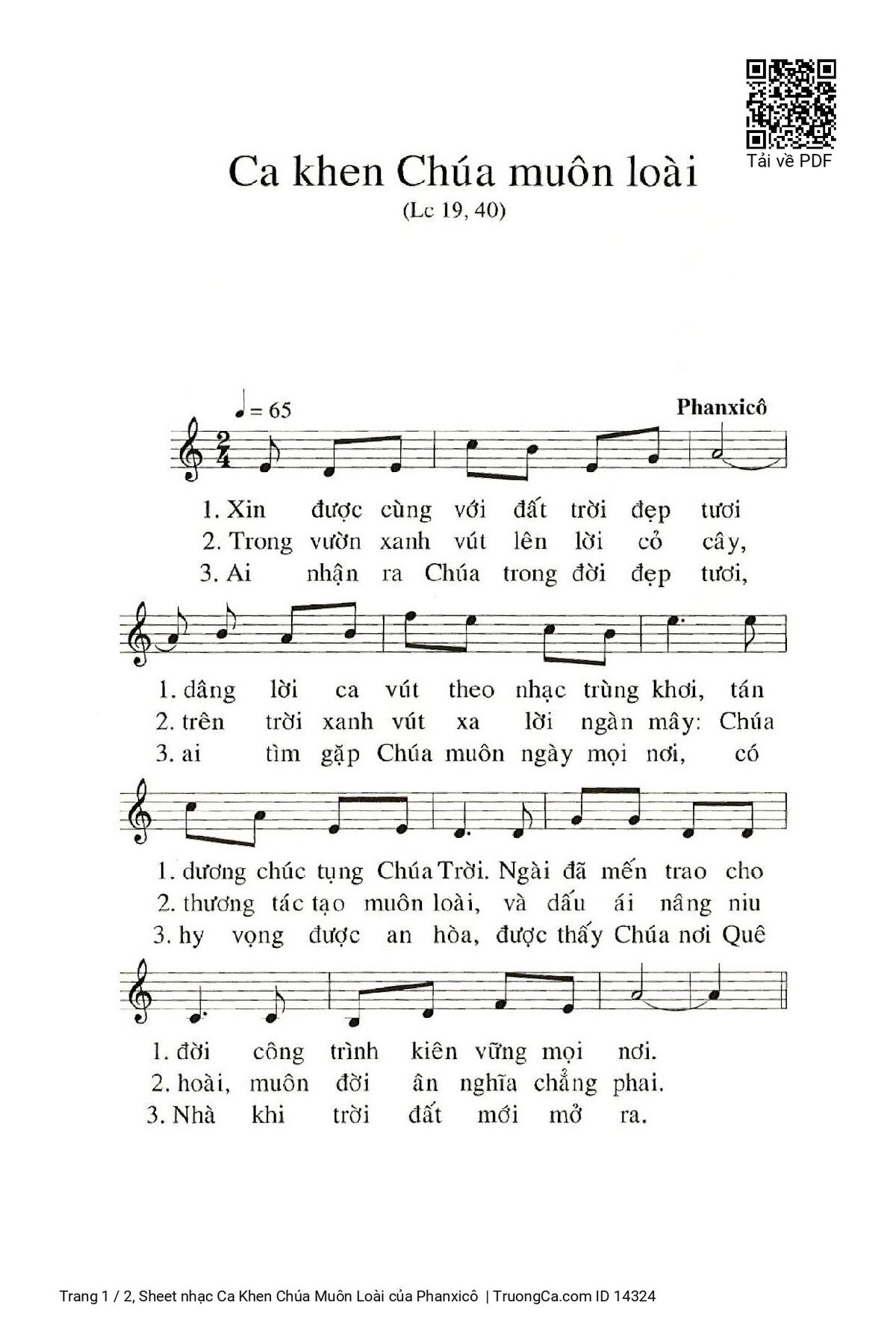 Các sheet PDF tương tự Ca Khen Chúa Muôn Loài:
