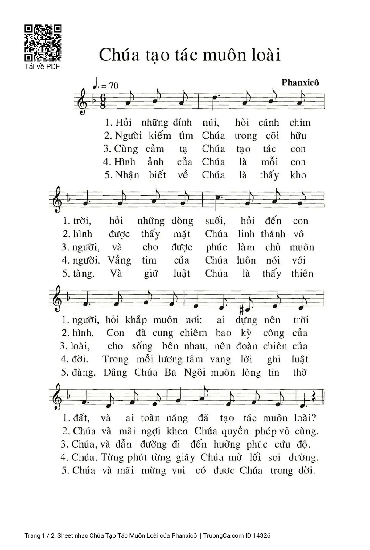 1. Hỏi những đỉnh núi, hỏi cánh chim trời, hỏi những dòng suối, hỏi đến con người, hỏi khắp muôn nơi: ai dựng nên trời đất, và ai toàn năng đã tạo tác muôn loài?
