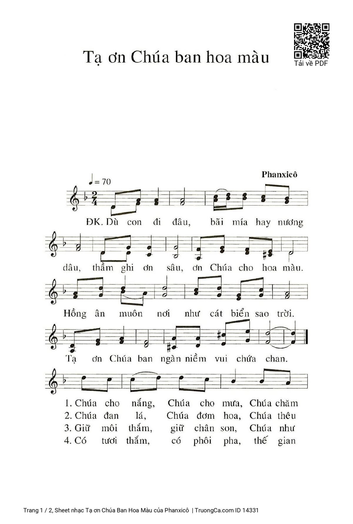 Các sheet PDF tương tự Tạ ơn Chúa Ban Hoa Màu: