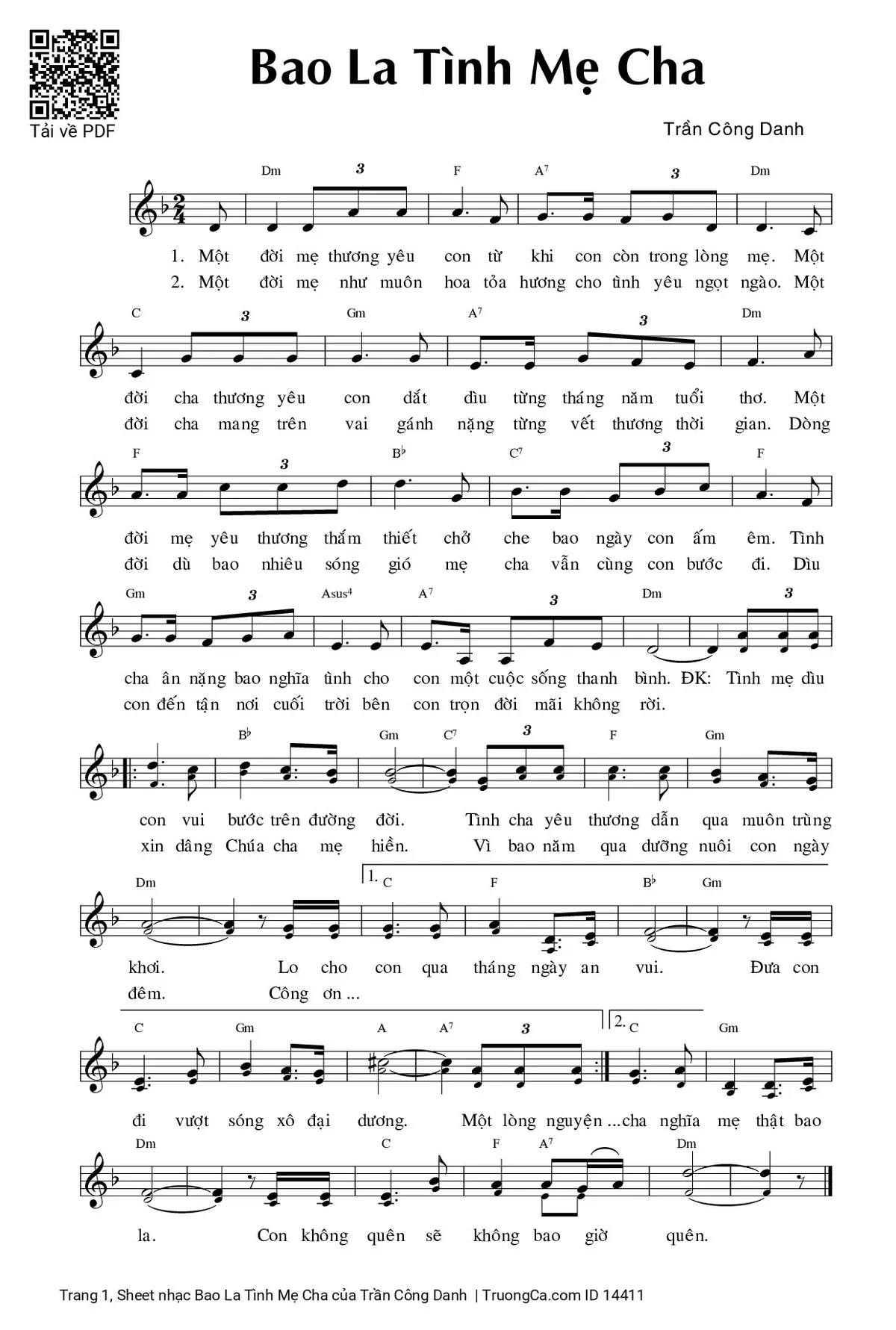 Các sheet PDF tương tự Bao La Tình Mẹ Cha: