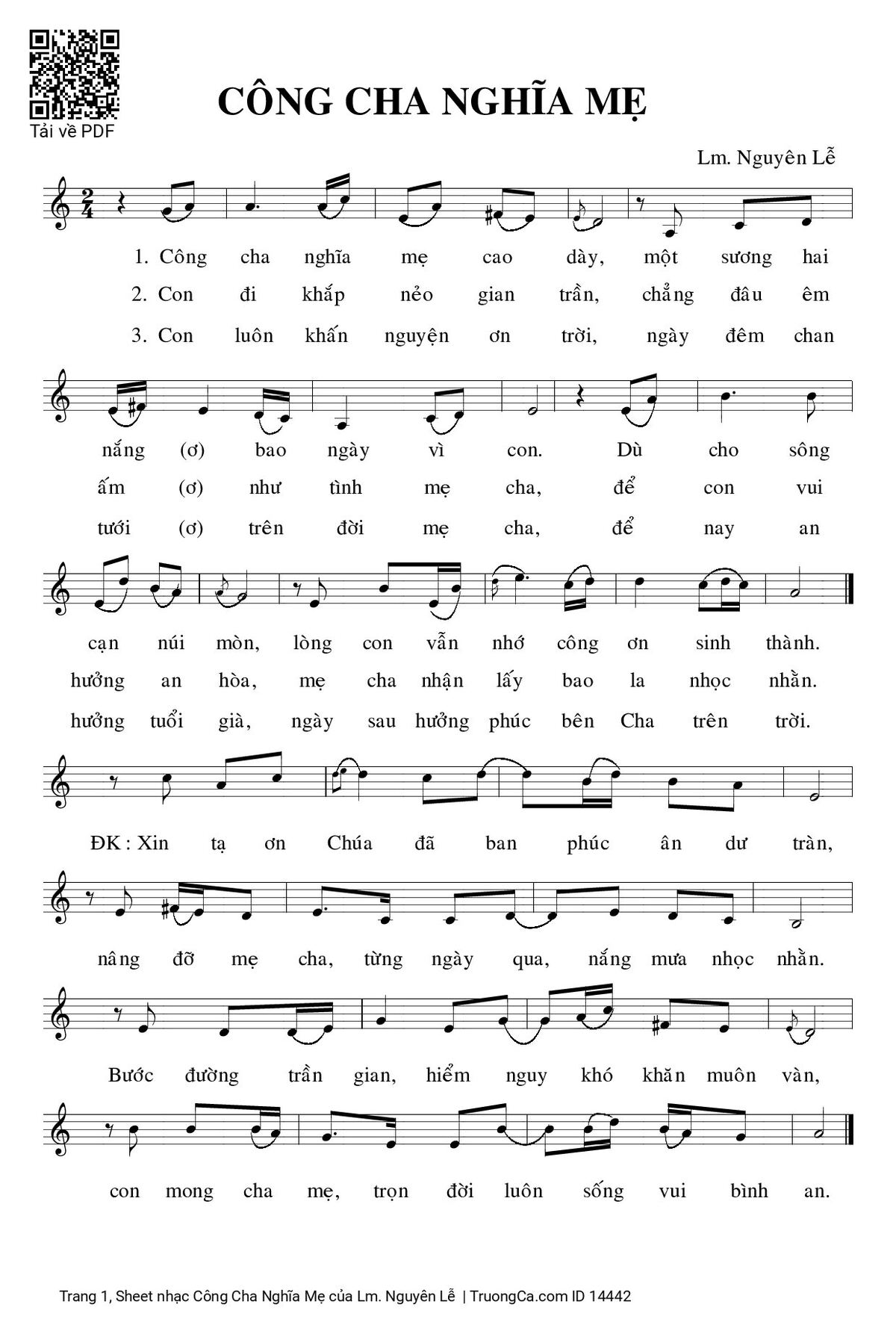 Các sheet PDF tương tự Công Cha Nghĩa Mẹ: