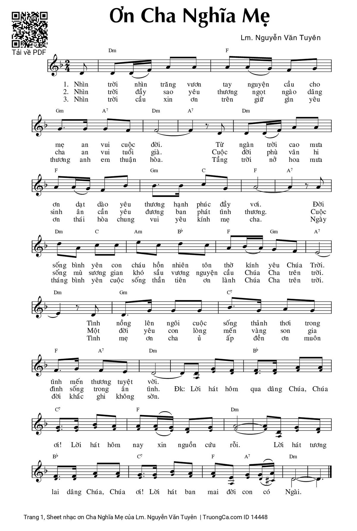 Các sheet PDF cùng tên ơn Cha Nghĩa Mẹ: