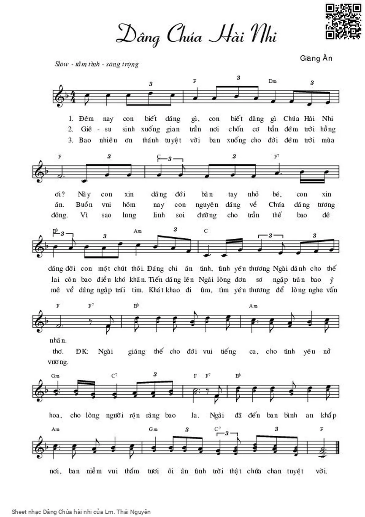 Lm. Thái Nguyên Đêm khuya êm ả dần trôi gió đông về tuyết sương giữa trời [PDF] [Sheet] [Lời H.A] [Mp4/Midi]