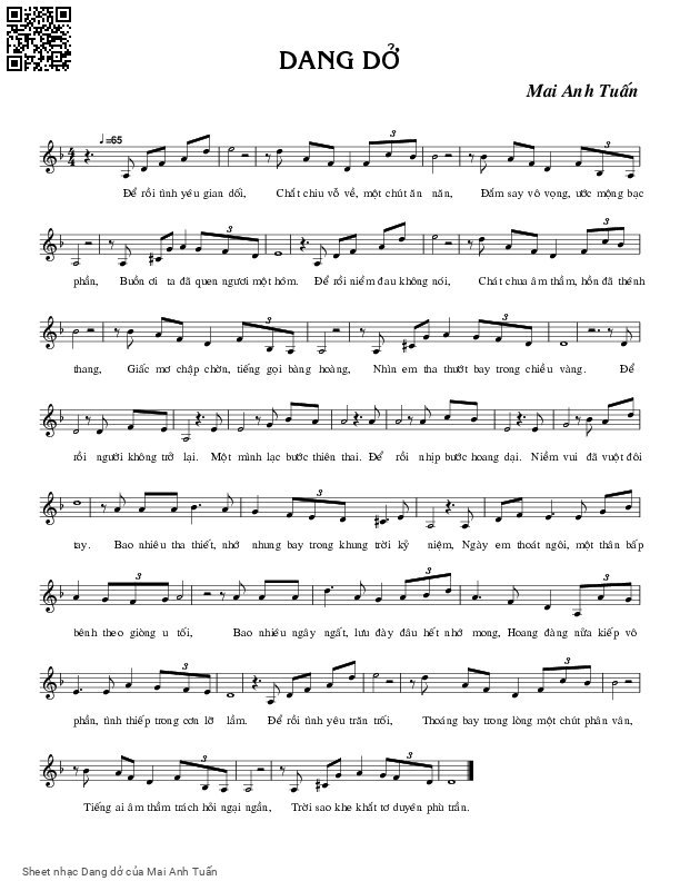 Mai Anh Tuấn Để rồi tình yêu gian dối Chắt chiu vỗ về [PDF] [Sheet] [Lời H.A] [Mp4/Midi]