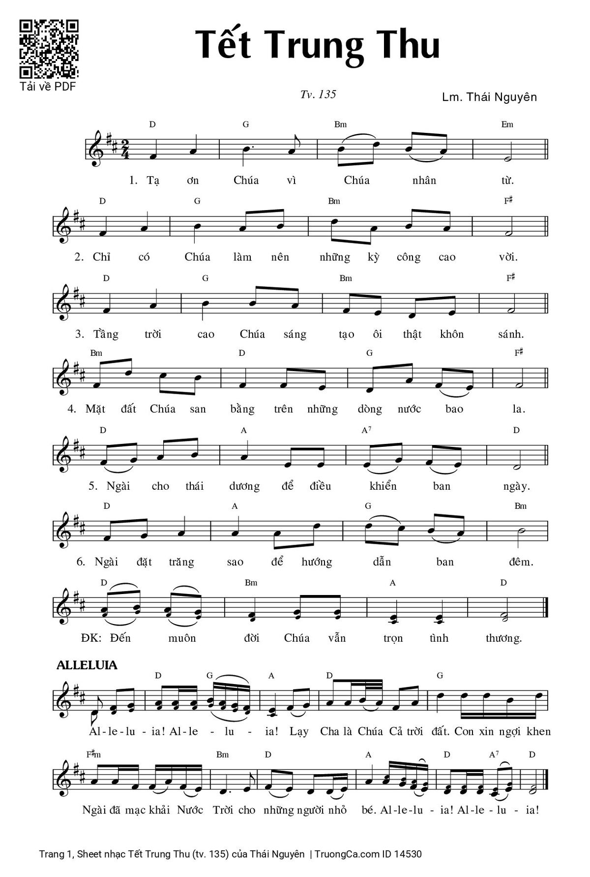 Alleluia, Alleluia. Lạy Cha là Chúa Cả trời đất. Con xin ngợi khen Ngài đã mạc khải Nước Trời cho những người nhỏ bé. Alleluia, Alleluia.