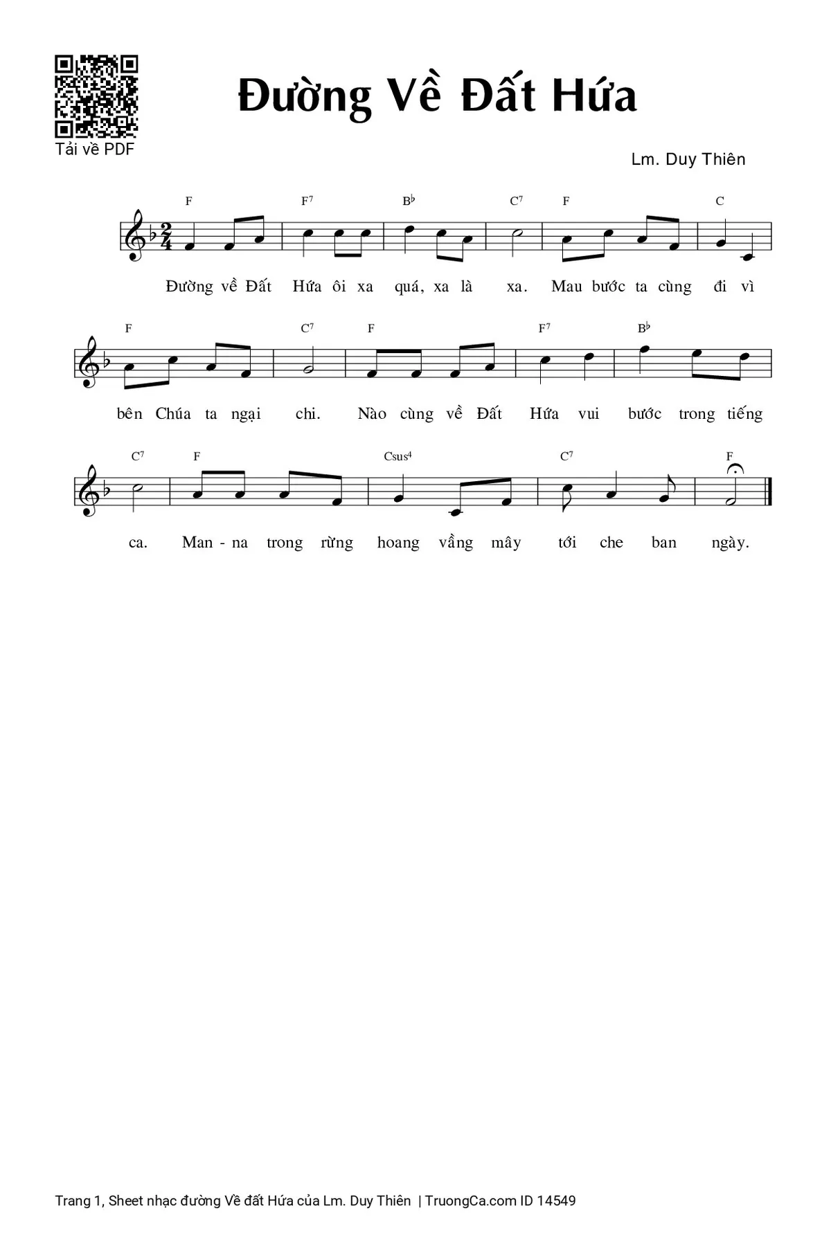 Đường về Đất Hứa ôi xa quá, xa là xa, mau bước ta cùng đi vì bên Chúa ta ngại chi. Nào cùng về đất hứa vui bước trong tiếng ca. Manna trong rừng hoang vầng mây tới che ban ngày