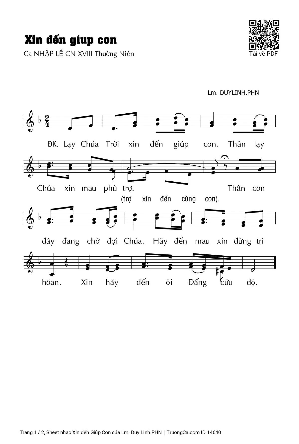 Điệp khúc. Lạy Chúa Trời xin đến giúp con. Thân lạy Chúa xin mau phù trợ. Thân con đây đang chờ đợi Chúa. Hãy đến mau xin đừng trí hoãn. Xin hãy đến ôi Đấng cứu độ.