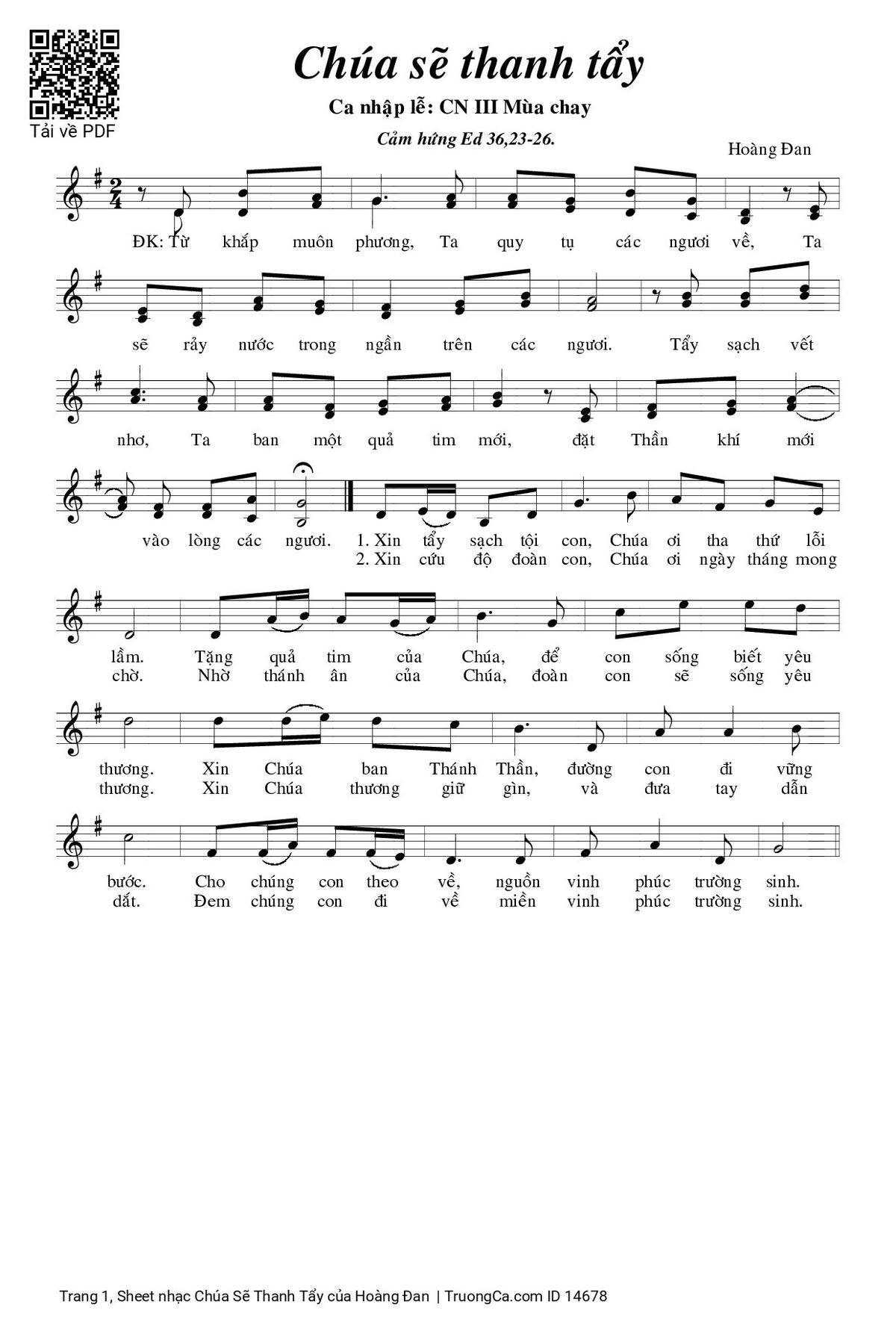 1. Xin tẩy sạch tội con, Chúa ơi tha thứ lỗi lầm. Tặng quả tim của Chúa, để con sống biết yêu thương. Xin Chúa ban Thánh Thần, đường con đi vững bước. Cho chúng con theo về, nguồn vinh phúc trường sinh.