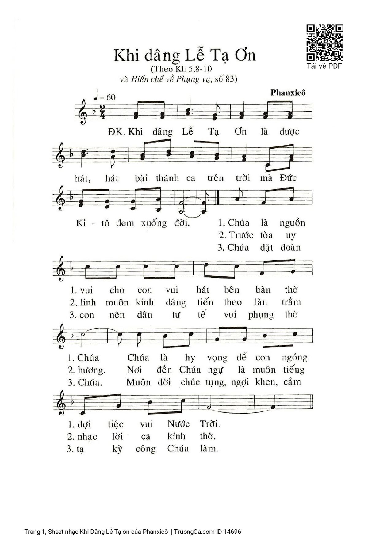 Các sheet PDF tương tự Khi Dâng Lễ Tạ ơn: