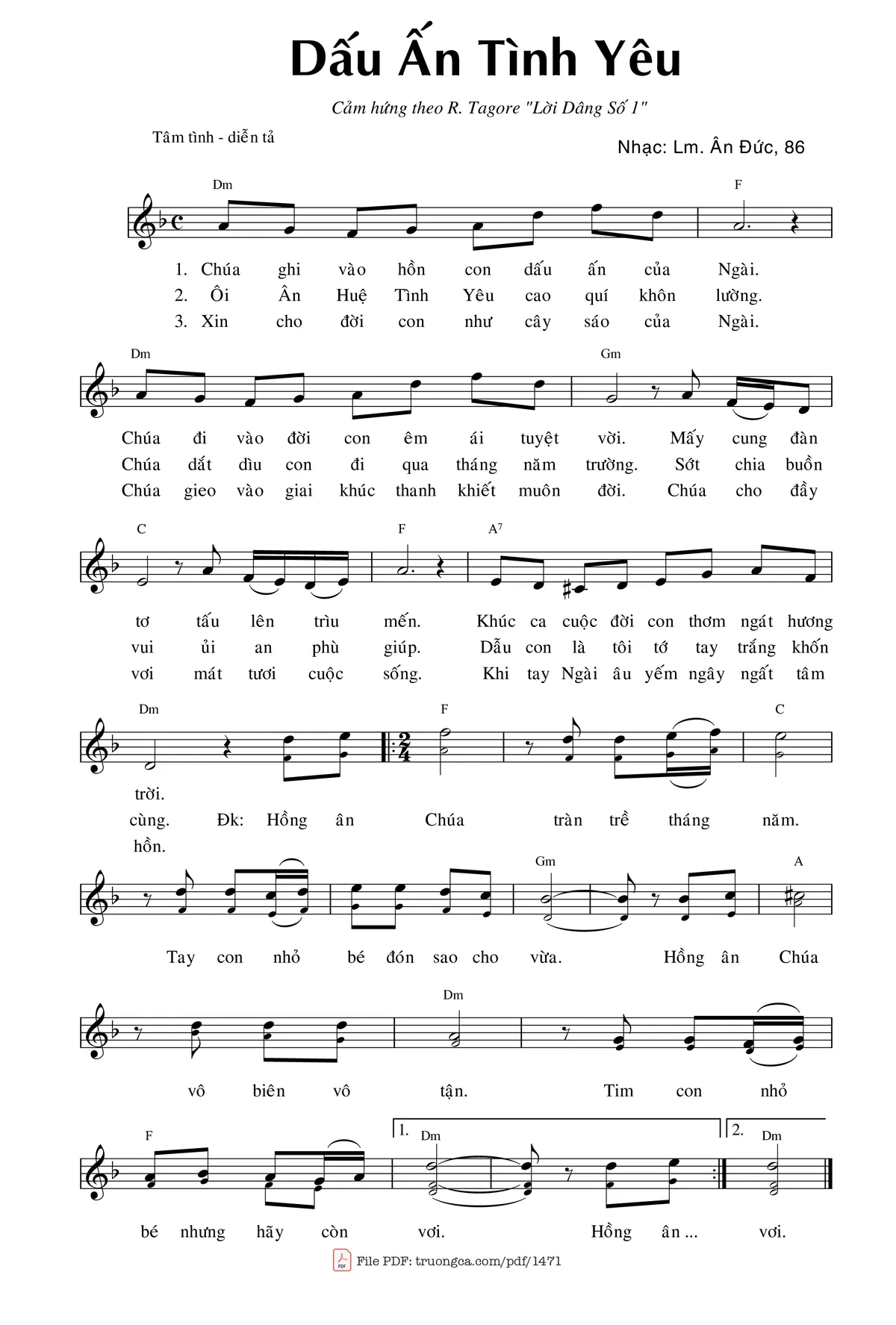 Lm. Ân Đức Chúa ghi vào hồn con dấu ấn của Ngài Chúa ghi vào đời con êm ái tuyệt vời [PDF] [Sheet] [Lời H.A] [Mp4/Midi]