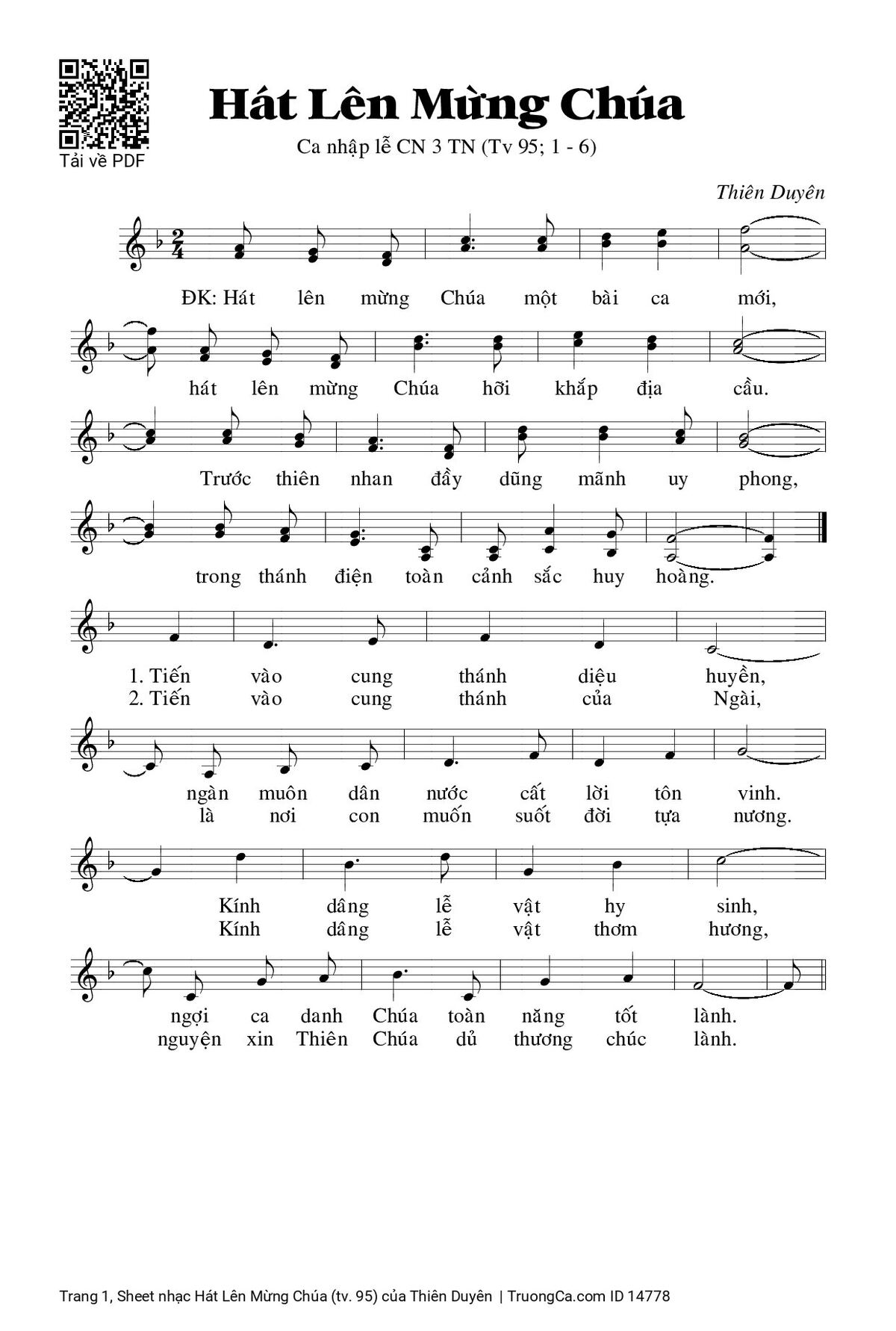 Các sheet PDF cùng tên Hát Lên Mừng Chúa (tv. 95):