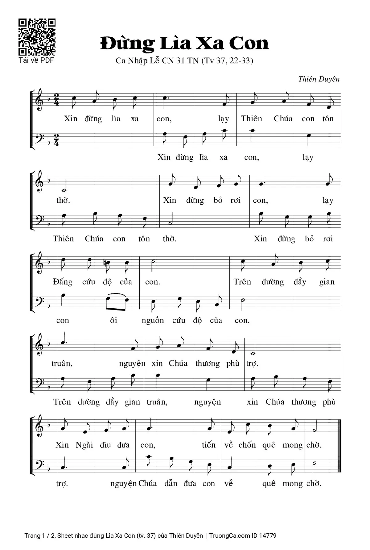 Các sheet PDF tương tự đừng Lìa Xa Con (tv. 37):