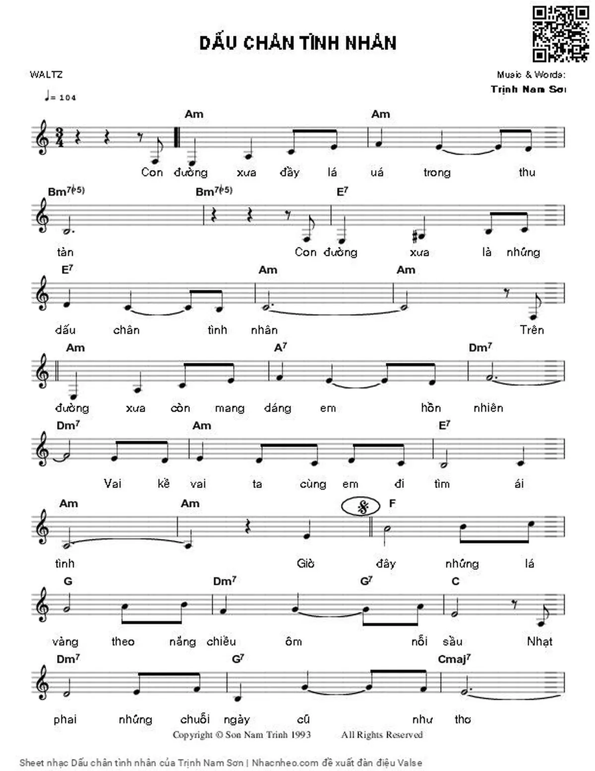 Trịnh Nam Sơn Con đường xưa đầy lá úa trong Thu tàn [PDF] [Sheet] [Lời H.A] [Mp4/Midi]
