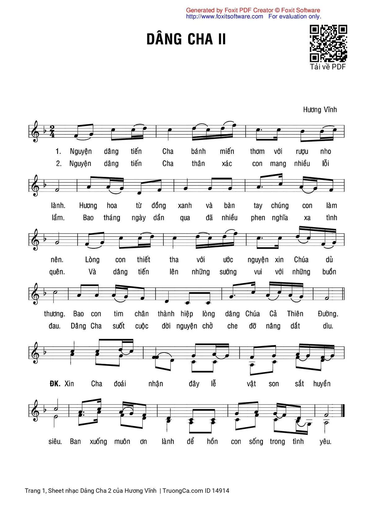 2. Nguyện dâng tiến Cha thân xác con mang nhiều lỗi lầm. Bao tháng ngày dần qua đã nhiều phen nghĩa xa tình quên. Và dâng tiến lên những sướng vui với những buồn đau. Dâng Cha suốt cuộc đời nguyện chở che đỡ nâng dắt dìu.