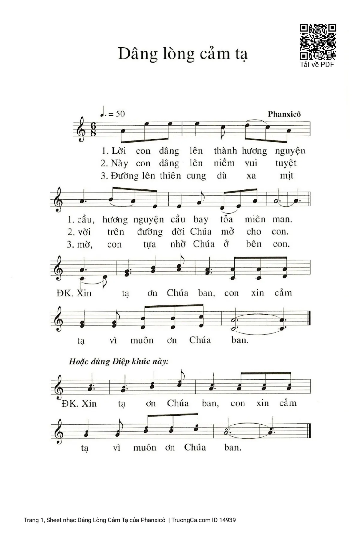 Điệp khúc. Xin tạ ơn Chúa ban, con xin cảm tạ vì muôn ơn Chúa ban.