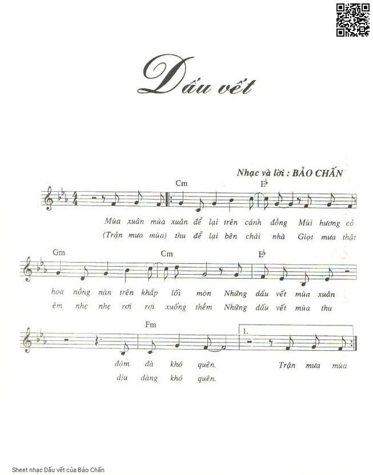 Chọn nút dấu + để tăng tông lên nửa cung, nút dấu - để giảm tông xuống nửa cung. Rê chuột vào hợp âm để xem các thế bấm hợp âm của bài hát Dấu vết.