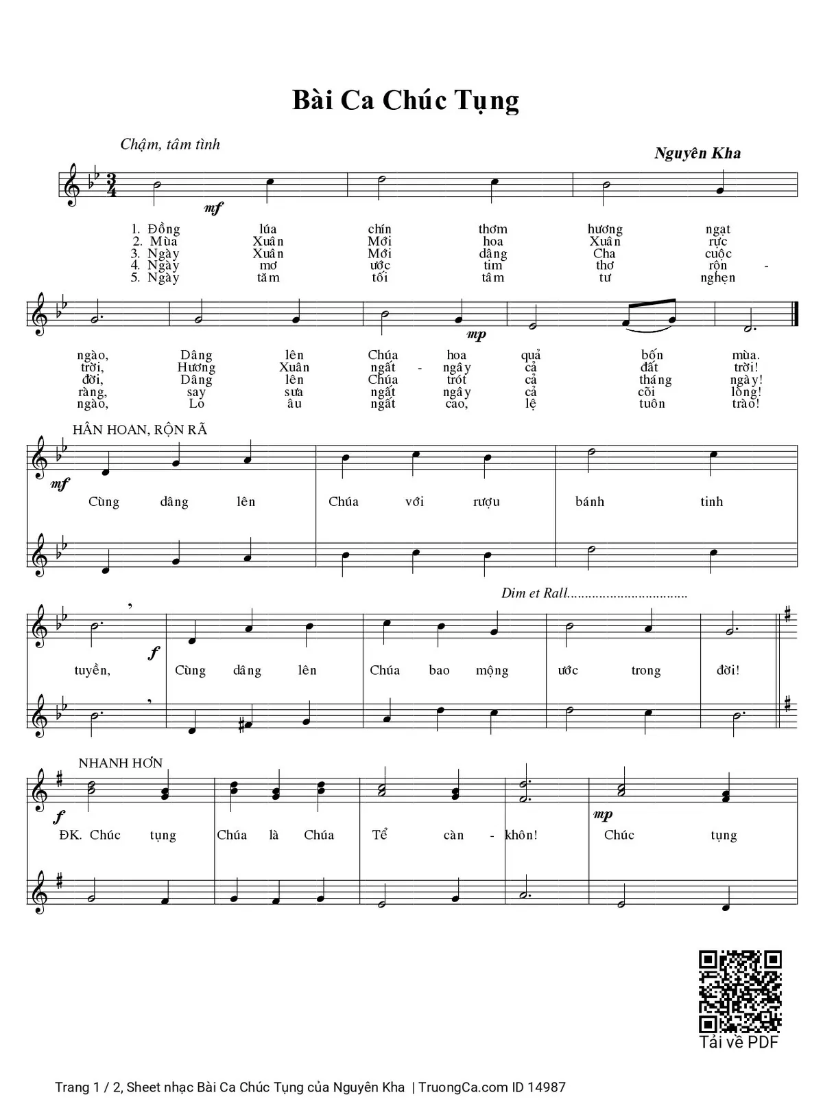 Các sheet PDF tương tự Bài Ca Chúc Tụng:
