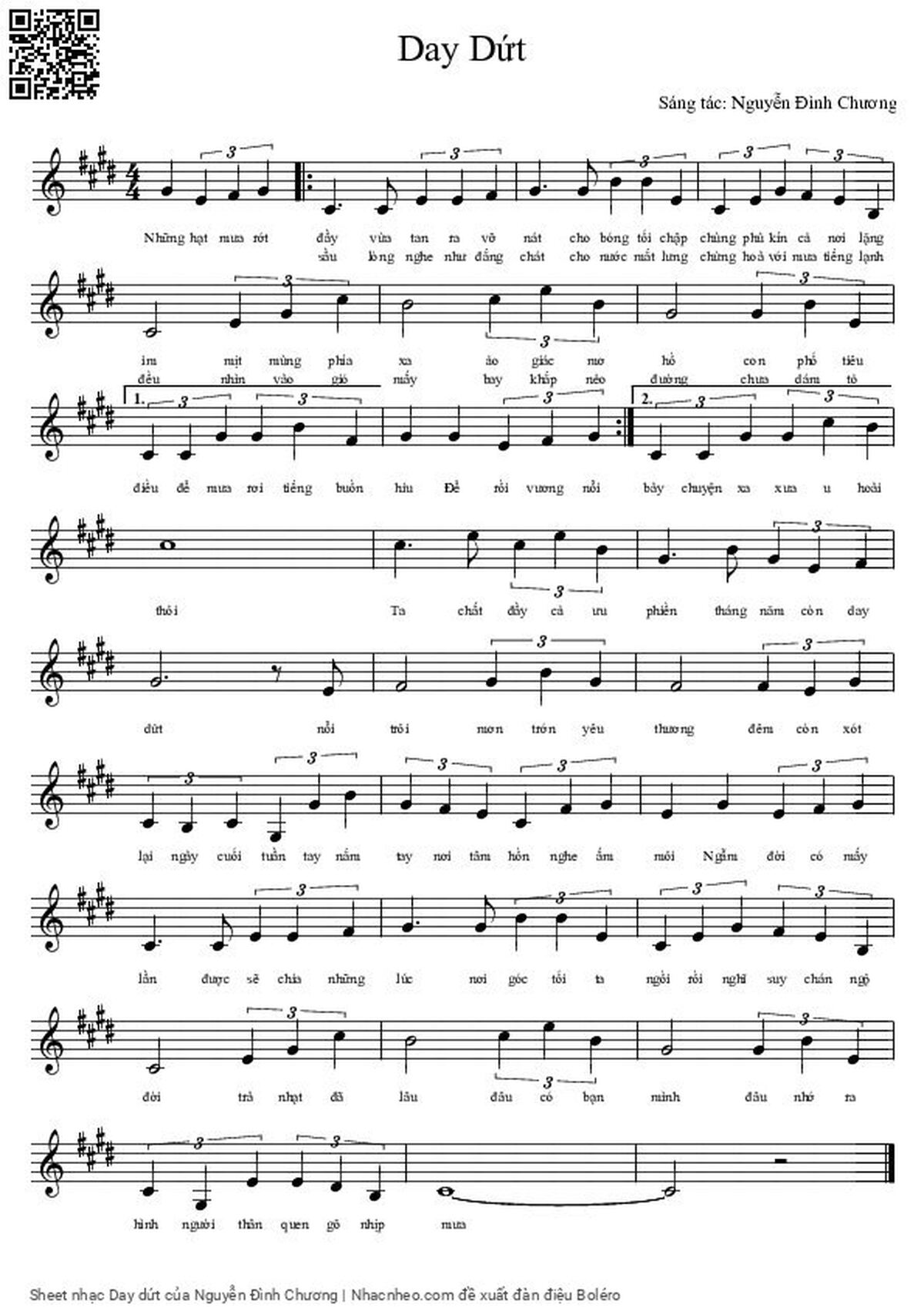 Phần nghe hát Day dứt (Nguyễn Đình Chương) được nhúng từ Youtube, Musescore hoặc link ngoài và chịu sự kiểm soát bản quyền của bên thứ ba đó, vì vậy có thể bị xóa hoặc chèn quảng cáo bất kỳ lúc nào. Nếu bạn không nghe - xem được ca sĩ hát tức là đã bị Youtube hoặc Musescore kiểm soát.