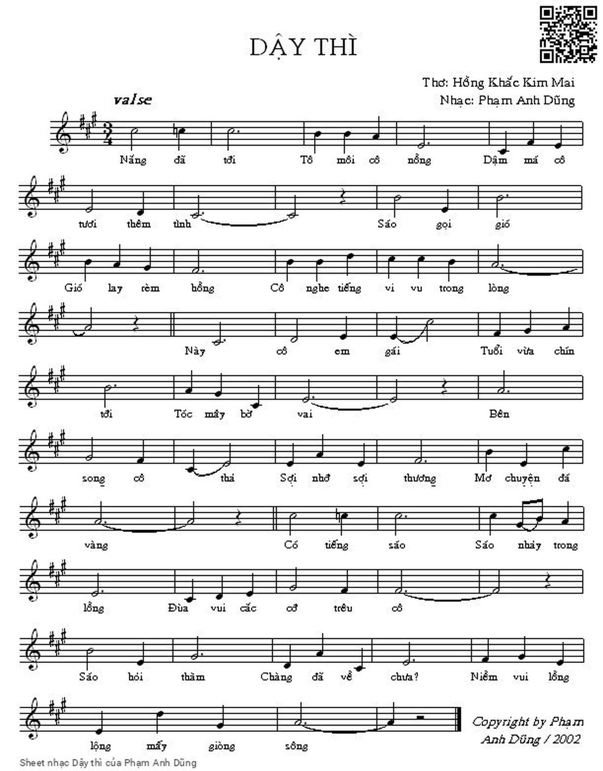 Chọn nút dấu + để tăng tông lên nửa cung, nút dấu - để giảm tông xuống nửa cung. Rê chuột vào hợp âm để xem các thế bấm hợp âm của bài hát Dậy thì.