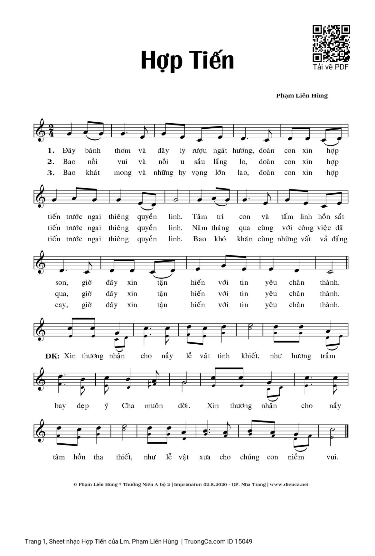 Chọn nút dấu + để tăng tông lên nửa cung, nút dấu - để giảm tông xuống nửa cung. Rê chuột vào hợp âm để xem các thế bấm hợp âm của bài hát Hợp Tiến.