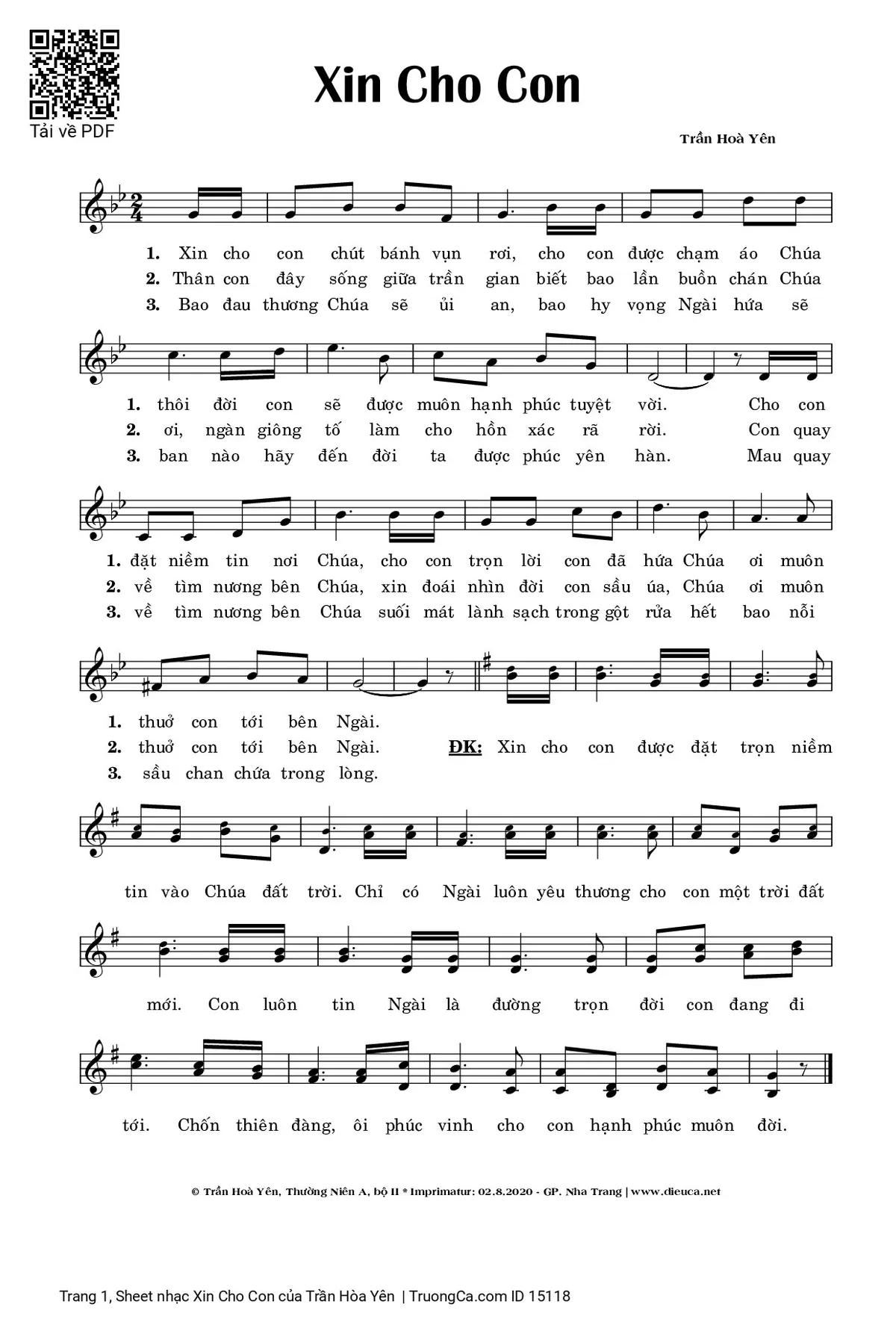 Các sheet PDF tương tự Xin Cho Con: