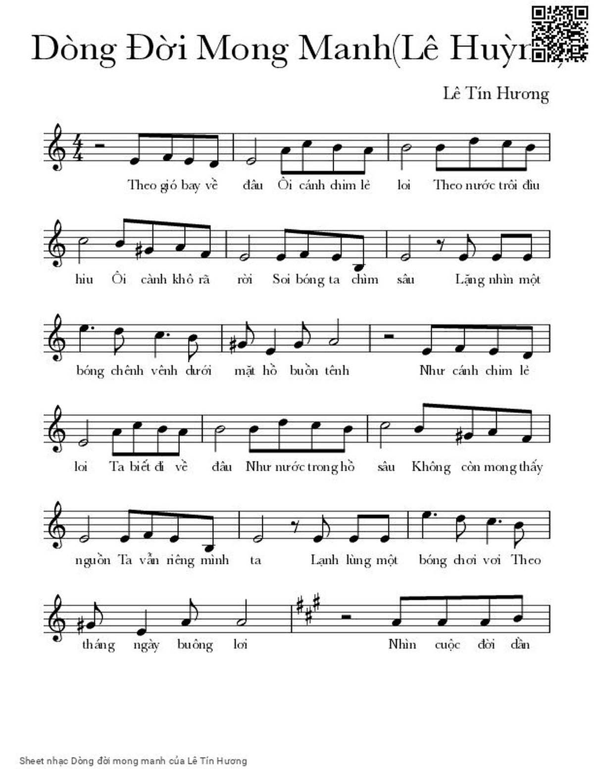 Lê Tín Hương Theo gió bay về đâu Ôi cánh chim lẻ loi [PDF] [Sheet] [Lời H.A] [Mp4/Midi]