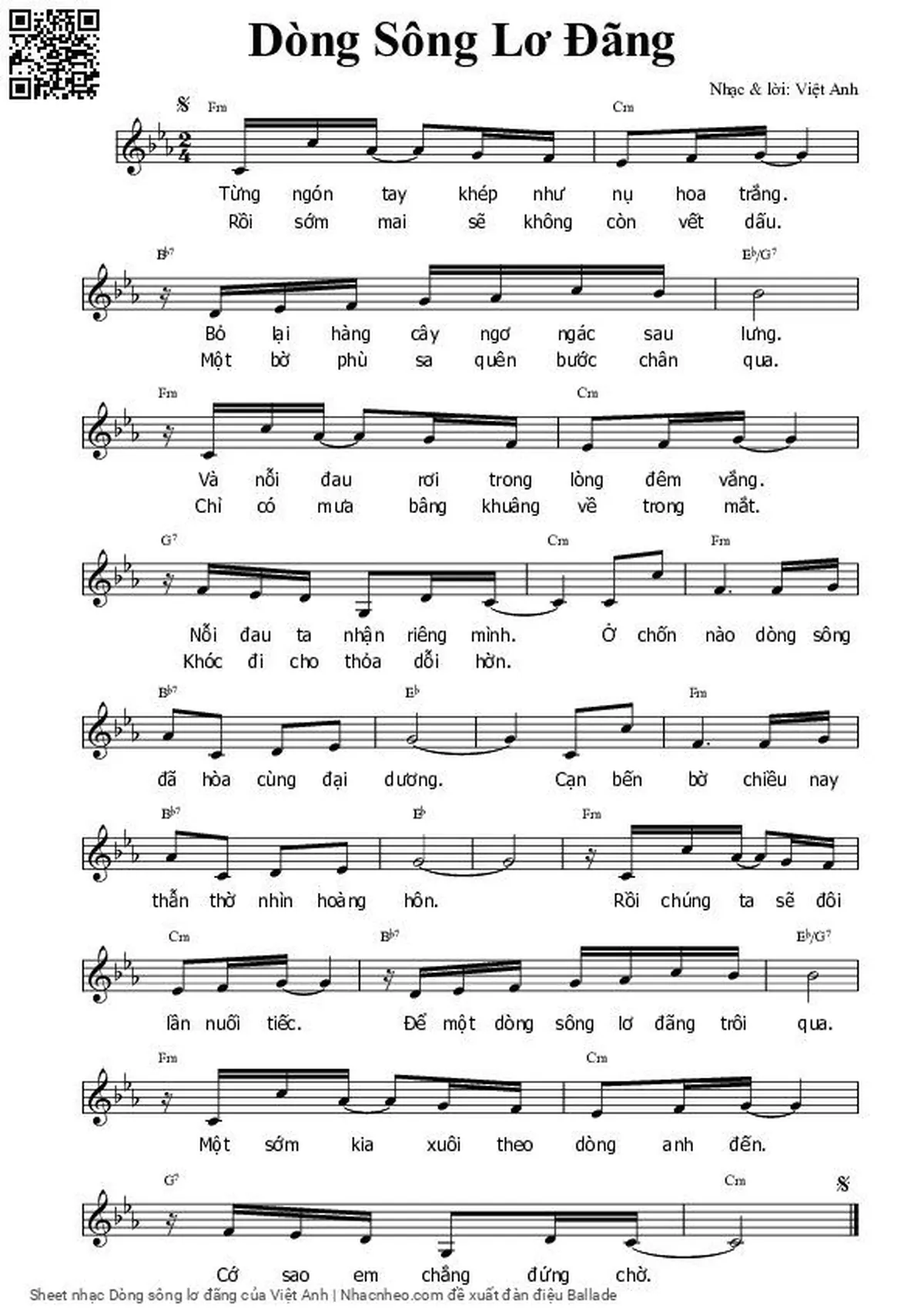Phần nghe hát Dòng sông lơ đãng (Việt Anh) được nhúng từ Youtube, Musescore hoặc link ngoài và chịu sự kiểm soát bản quyền của bên thứ ba đó, vì vậy có thể bị xóa hoặc chèn quảng cáo bất kỳ lúc nào. Nếu bạn không nghe - xem được ca sĩ hát tức là đã bị Youtube hoặc Musescore kiểm soát.