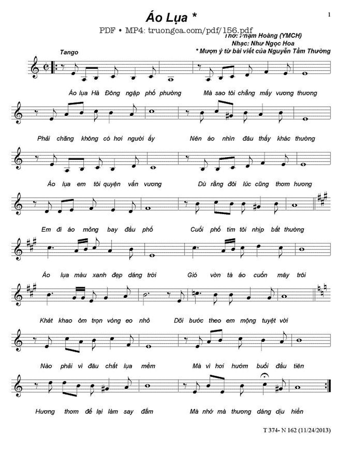 Phần nghe hát Áo lụa (Như Ngọc Hoa) được nhúng từ Youtube, Musescore hoặc link ngoài và chịu sự kiểm soát bản quyền của bên thứ ba đó, vì vậy có thể bị xóa hoặc chèn quảng cáo bất kỳ lúc nào. Nếu bạn không nghe - xem được ca sĩ hát tức là đã bị Youtube hoặc Musescore kiểm soát.