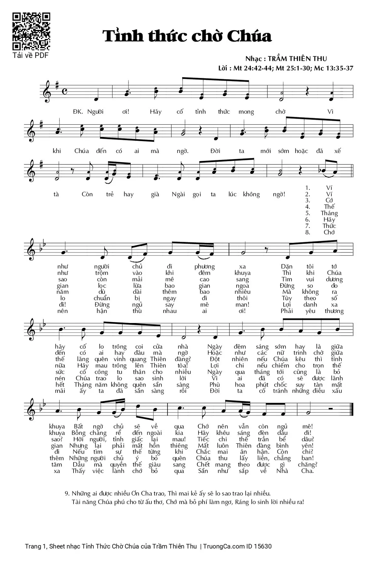 Câu đầu: Lời Mt Mt Mc Người ơi Hãy cố tỉnh thức mong chờ Vì khi Chúa đến có ai mà ngờ