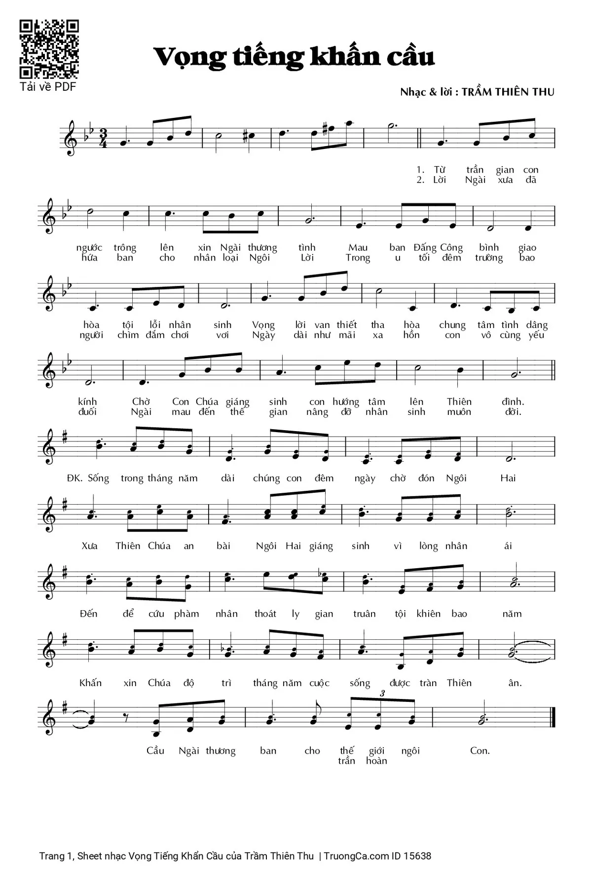 1. Từ trần gian con ngước trông lên xin Ngài thương tình Mau ban Đấng Công bình giao hòa tội lỗi nhân sinh Vọng lời van thiết tha hòa chung tâm tình dâng kính Chờ Con Chúa giáng sinh con hướng tâm lên Thiên đình.