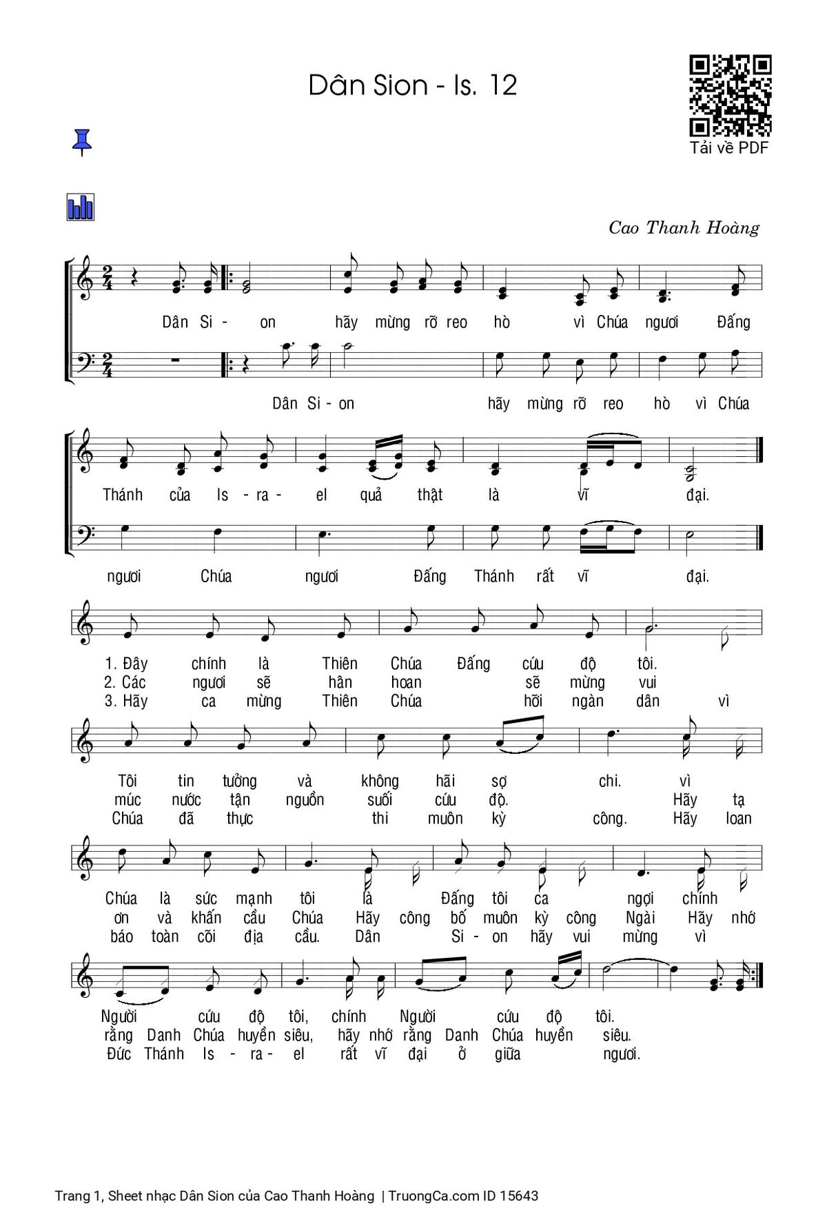 Điệp khúc. Dân Si-on hãy mừng rỡ reo hò vì Chúa ngươi Đấng Thánh của Is-ra-el quả thật là vĩ đại.