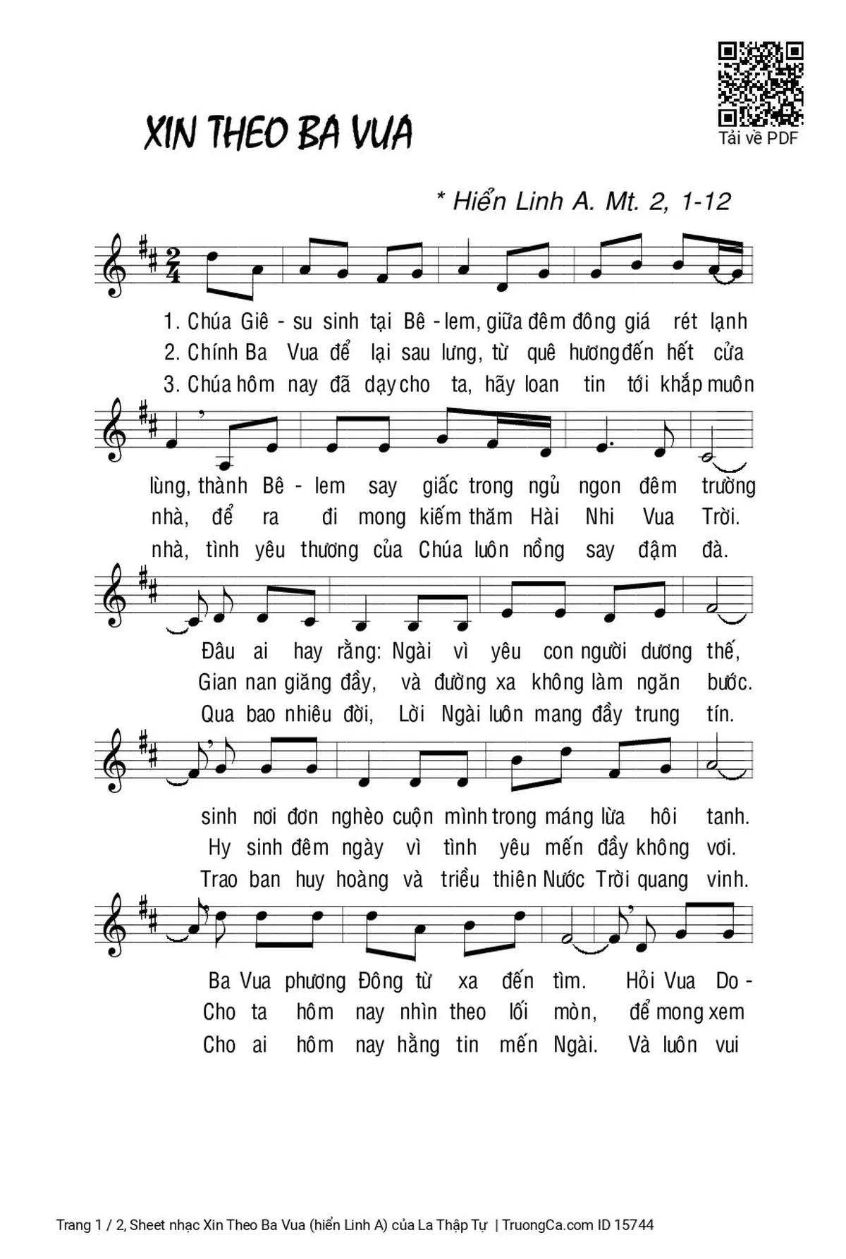 Các sheet PDF tương tự Xin Theo Ba Vua (hiển Linh A):