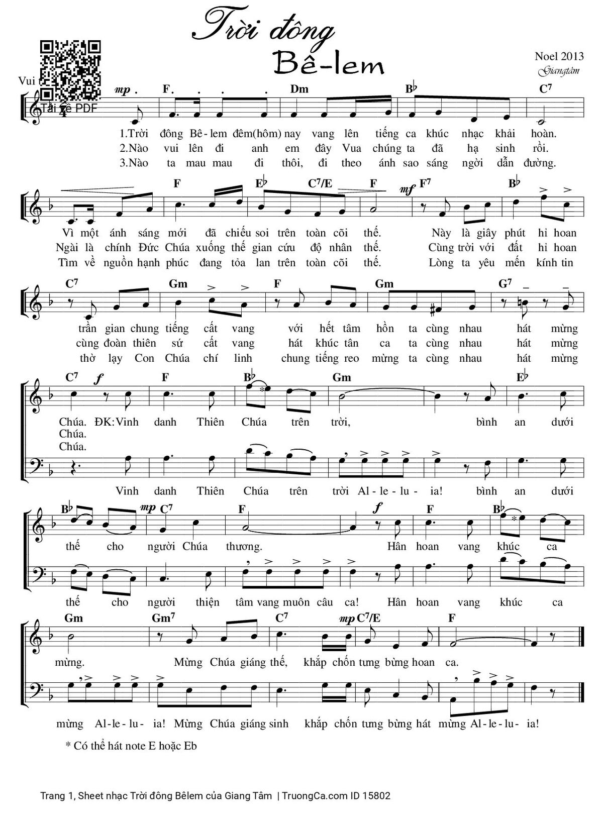 1. Trời đông Be-lem đêm nay vang lên tiếng ca khúc nhạc khải hoàn. Vì một ánh sáng mới đã chiếu soi trên toàn dương thế. Này là giây phút hỉ hoan . Trần gian chung tiếng cất vang. Với hết tâm hồn ta cùng nhau hát mừng Chúa