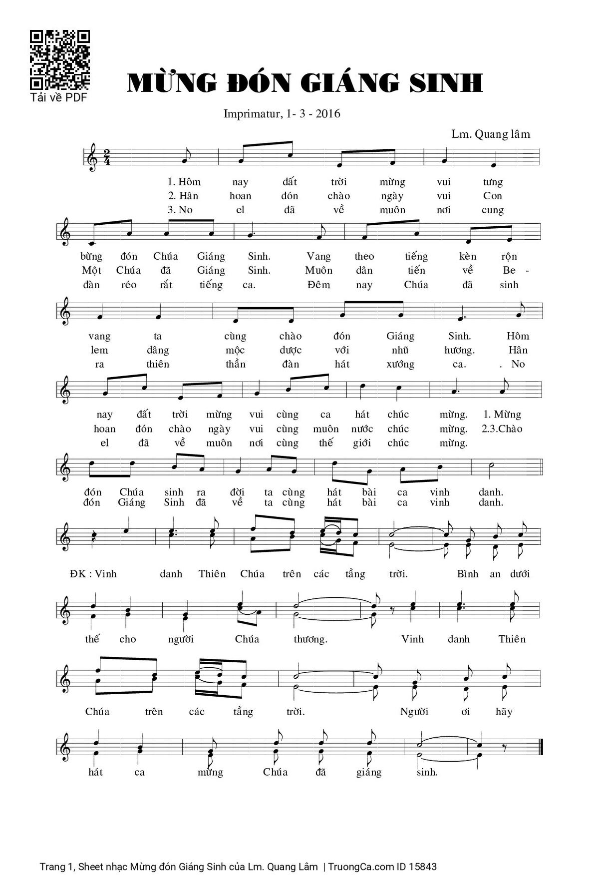 1. Hôm nay đất trời mừng vui tưng bừng đón Chúa Giáng Sinh. Vang theo tiếng kèn rộn vang ta cùng chào đón Giáng Sinh. Hôm nay đất trời mừng vui cùng ca hát chúc mừng. Mừng đón Chúa sinh ra đời ta cùng hát bài ca vinh danh.