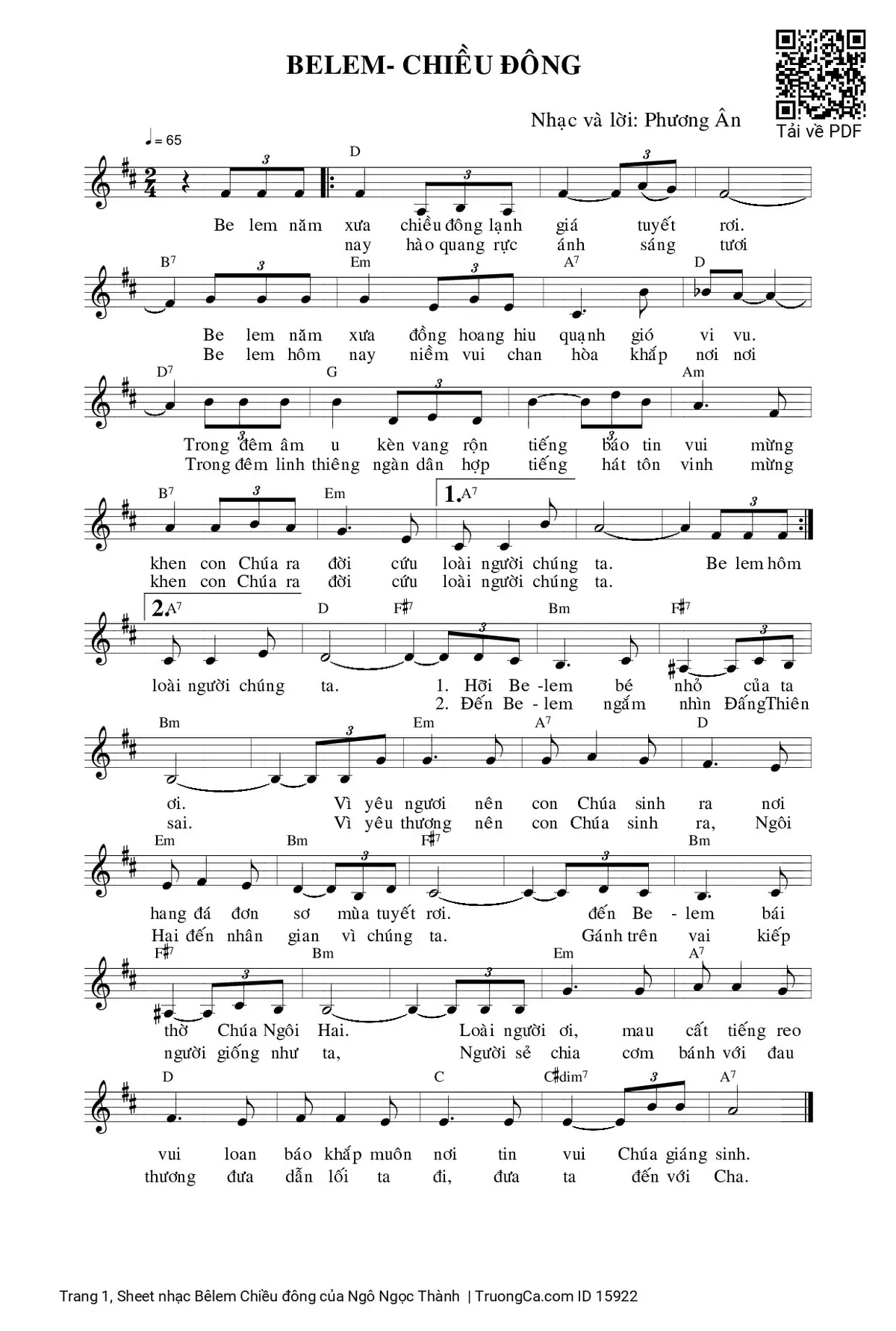 Điệp khúc. Be lem năm xưa chiều đông lạnh giá tuyết rơi. Be lem năm xưa đồng hoang hiu quạnh gió vi vu. Trong đêm âm u kèn vang rộn tiếng báo tin vui mừng khen con Chúa ra đời cứu loài người chúng ta. Be lem hôm nay hào quang rực ánh sáng tươi Be lem hôm nay niềm vui chan hòa khắp nơi nơi Trong đêm linh thiêng ngàn dân hợp tiếng hát tôn vinh mừng khen con Chúa ra đời cứu loài người chúng ta.