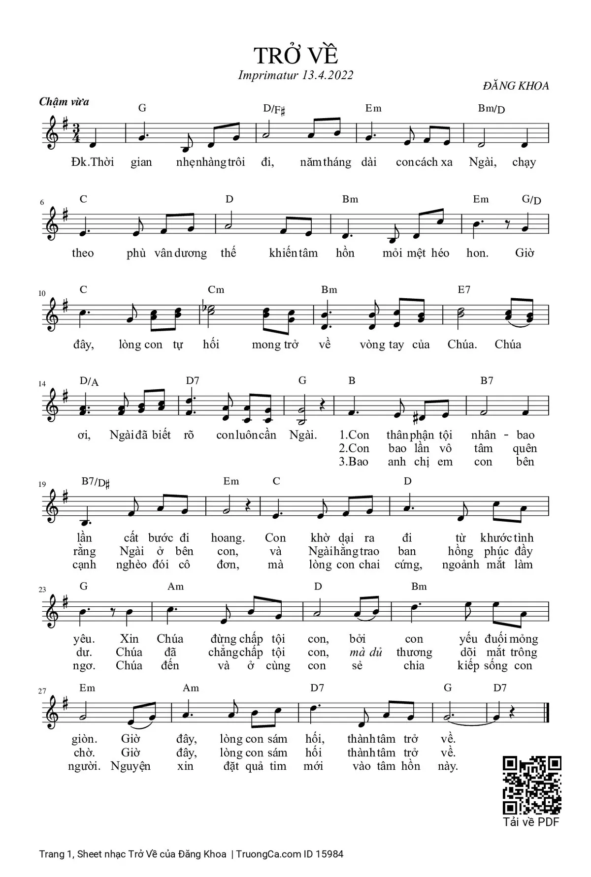 1/ Con thân phận tội nhân bao lần cất bước đi hoang. Con khờ dại ra đi từ khước tình yêu, xin Chúa đừng chấp tội con bởi vì con yếu đuối mỏng giòn. Giờ đây lòng con sám hối thành tâm trở về.