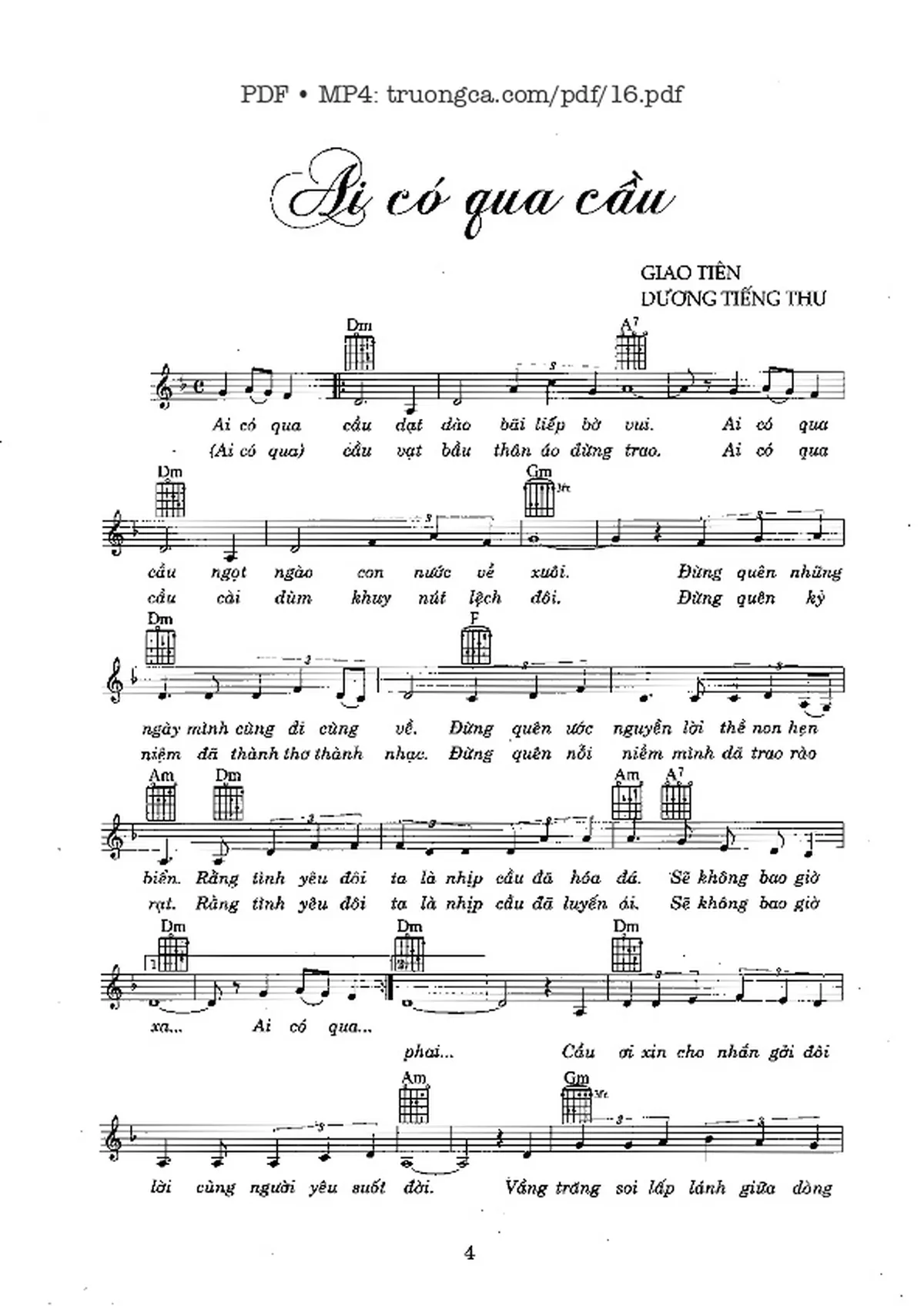 Giao Tiên Ai có qua cầu dạt dào bãi kiếp bờ vui [PDF] [Sheet] [Lời H.A] [Mp4/Midi]