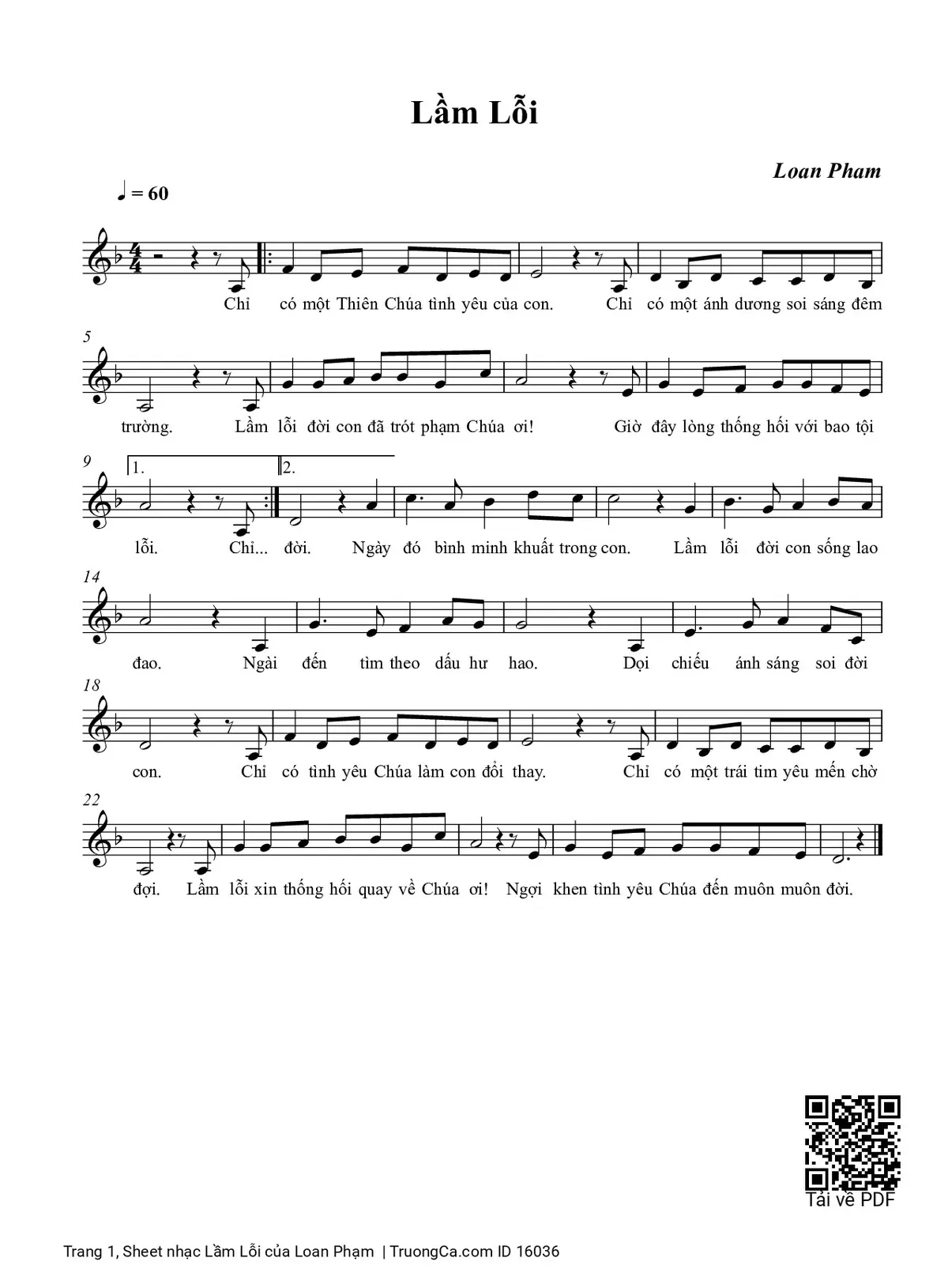 Câu đầu: Lầm Lỗi Sáng Tác Loan Pham Chỉ có một Thiên Chúa tình yêu của con