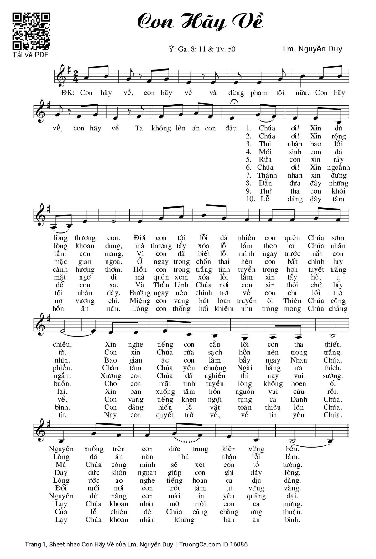 Điệp khúc. Con hãy về, con hãy về và đừng phạm tội nữa. Con hãy về, con hãy về Ta không lên án con đâu.