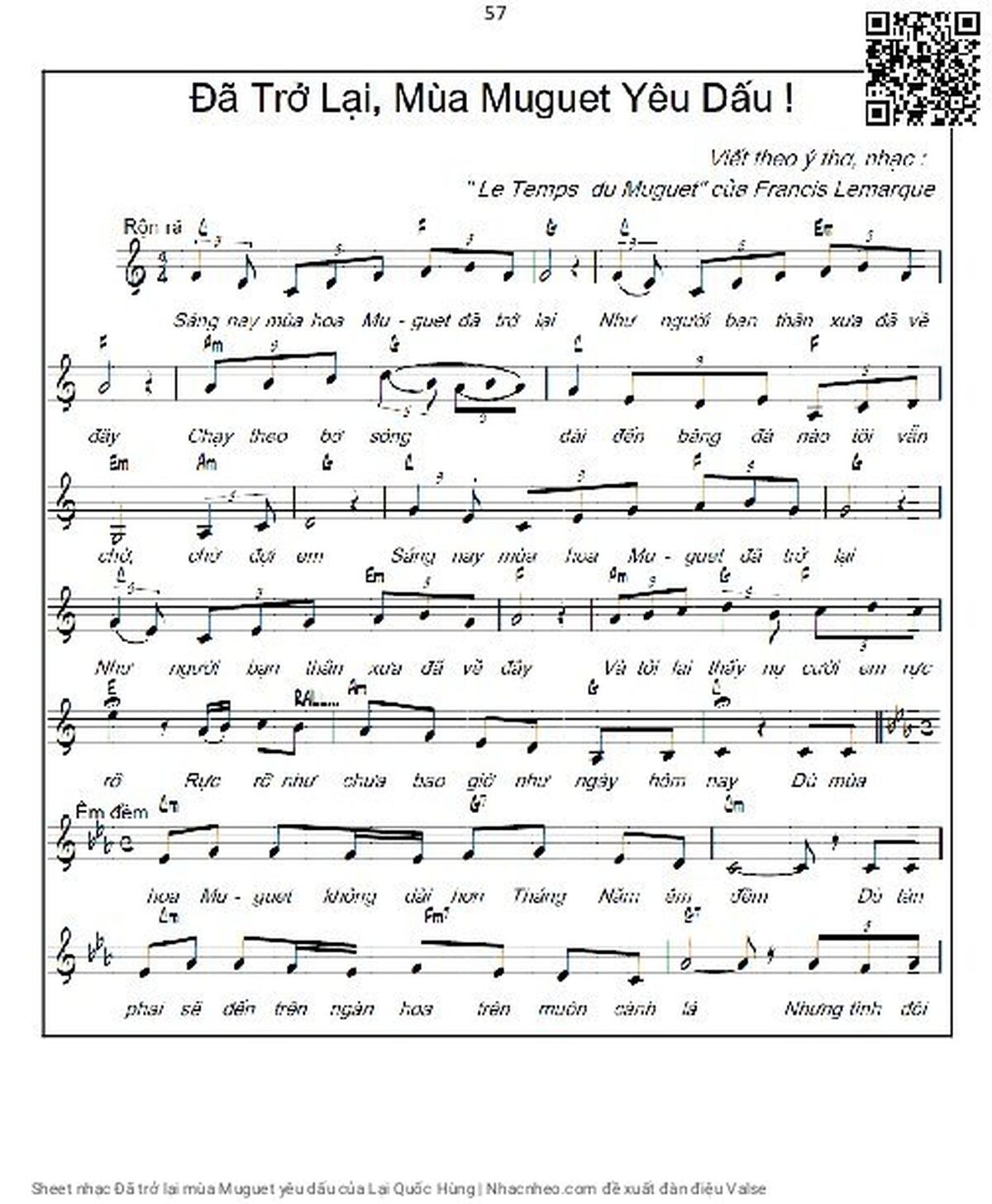 Lại Quốc Hùng Sáng nay mùa hoa Muguet đã trở lại Như người bạn thân xưa đã về đây [PDF] [Sheet] [Lời H.A] [Mp4/Midi]