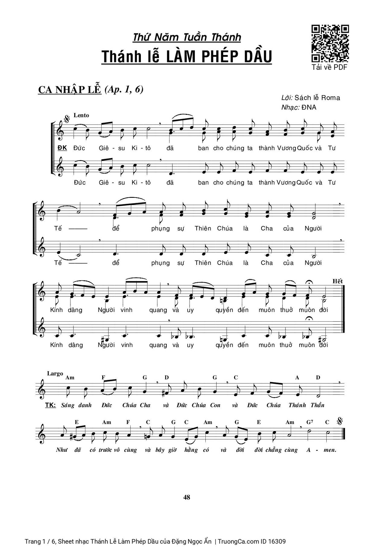 Các sheet PDF tương tự Thánh Lễ Làm Phép Dầu: